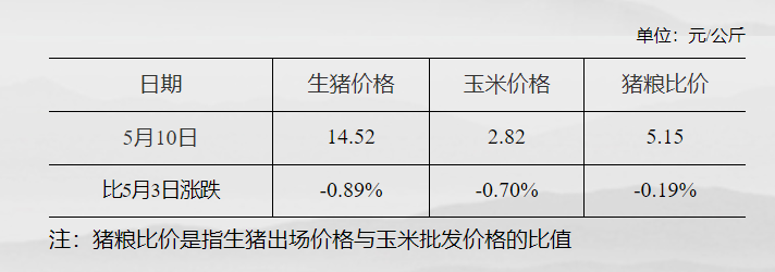 猪粮比价为5.15 较5月3日下跌0.19% 发改委网站 05月15日 据国家发改委数据,截至5月10日,全国生猪出场价格为14.52元/公斤,较5月3日下跌0.89%;主要批发市场玉米价格为2.82元/公斤,较5月3日下跌0.70%;猪粮比价为5.15,较5月3日下跌0.19%。 (文章来源:发改委网站) (责任编辑:admin)
