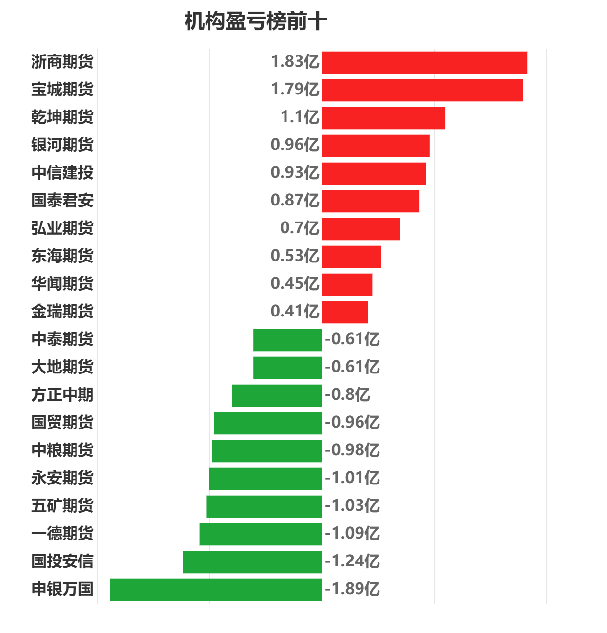 每日市场龙虎榜,带你深度了解市场。 市场一览:周一商品期货综合指数上涨0.02%,日内资金净流入36.00亿元。 市场成交量为3809.59万手,成交额为2.15万亿元。 持仓量为3915.17万手,较前一交易日增加12.50万手。 市场成交量前十和持仓量前十如下图所示: ![]() ![]() ![]() 品种盈亏榜:今日商品期货中玻璃盈利第一,为1.54亿元。 橡胶亏损第一,为1.93亿元。 ![]() 就玻璃而言,今日席位盈利前三为国泰君安、浙商期货、东吴期货,分别盈利12263.91万元、9862.46万元、3720.68万元。 今日席位亏损前三为中信期货、华泰期货、国投安信,分别亏损4874.15万元、3097.10万元、2503.90万元。 ![]() 就橡胶而言,今日席位盈利前三为徽商期货、光大期货、南华期货,分别盈利1788.48万元、1677.76万元、1394.69万元。 今日席位亏损前三为国投安信、国泰君安、浙商期货,分别亏损5066.85万元、3759.58万元、2692.85万元。 ![]() 席位盈亏榜:今日机构席位中浙商期货盈利第一,为1.83亿元。 申银万国亏损第一,为1.89亿元。 ![]() 就浙商期货而言,今日品种盈利前三为玻璃、棉花、螺纹钢,分别盈利9862.46万元、6916.56万元、4057.92万元。 今日品种亏损前三为纯碱、橡胶、PTA,分别亏损4196.29万元、2692.85万元、1481.78万元。 ![]() 就申银万国而言,今日品种盈利前三为玻璃、豆油、沪铜,分别盈利2383.26万元、1099.47万元、929.98万元。 今日品种亏损前三为铁矿石、PTA、螺纹钢,分别亏损8808.54万元、7059.59万元、3589.54万元。 ![]() 注:可通过点击东方财富期货PC端左侧“龙虎榜”栏目及东方财富期货APP行情页面“龙虎榜”栏目查看各类机构持仓及盈亏榜单信息。 ![]() ![]() 以上图表数据来源:东方财富Choice (文章来源:东方财富研究中心) (责任编辑:admin) |