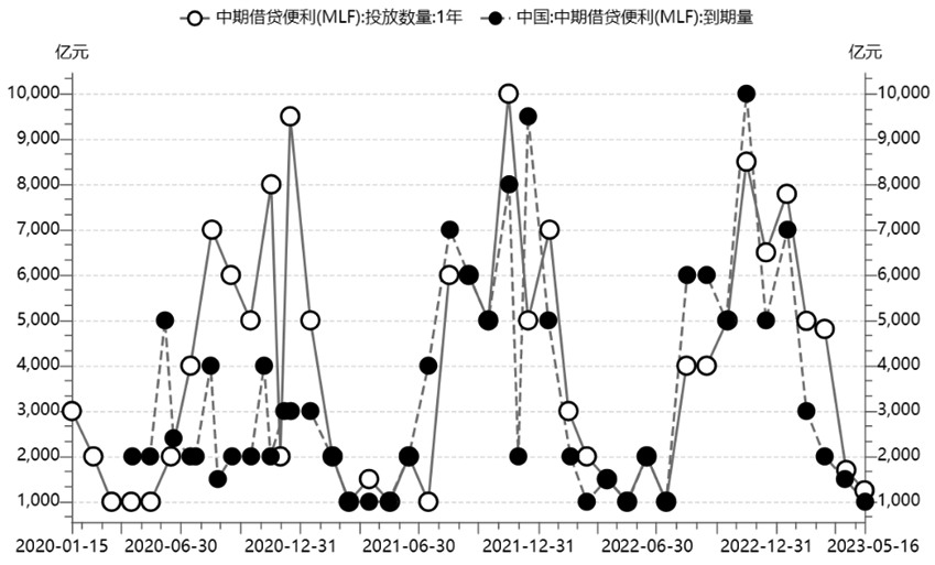 图为10年期国债期货主力合约收盘价及振幅变化 5月MLF等价小额增量续作 在4月PMI及信贷数据环比转弱的背景下,市场对MLF降息有所期待。不过,随着存款利率下调、信贷投放速度边际放缓,银行负债端压力有所缓解,全面总量性货币工具短期看必要性不大。5月MLF续作呈现“量稳价平”特征,小额净投放250亿元,体现了央行向市场补充中长期流动性的态度,利率维持在2.75%。5月MLF降息落空,也为后续货币政策留存了空间。