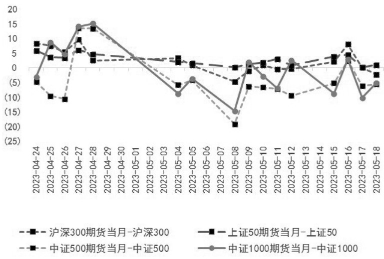图为股指期货当月合约升贴水走势 经济修复斜率放缓 今年以来,我国物价涨幅逐步回落,主要受食品、能源价格拖累。其中,食品 CPI 一季度环比持平,明显低于往年1%的水平,车企降价促销力度较大也带来短期下拉影响;服务CPI环比累计涨幅已接近疫情前水平,尤其是机票、住宿、文娱等线下活动分项回升明显。PPI在高基数影响下保持低位运行。当前我国经济还处于恢复发展过程中,有效需求不足仍是主要矛盾,二季度CPI涨幅可能继续保持低位。 4月社会融资规模增量为1.22万亿元,市场预期为1.72万亿元,前值5.38万亿元;新增人民币贷款7188亿元,预期1.13万亿元,前值3.89万亿元。分部门看,住户贷款减少2411亿元。其中,短期贷款减少1255亿元,中长期贷款减少1156亿元。从数据上来看,社融增速、人民币贷款等数据不及预期,特别是居民部分,无论是短贷和长贷均减少,我们认为居民短贷减少是因为消费呈现弱复苏,中长期贷款减少一方面是因为历史存量房贷利率较高,居民提前还贷,另一方面是买房需求仍然较弱。 4月份我国规模以上工业增加值同比实际增长5.6%。从环比看,4月份规模以上工业增加值比上月下降0.47%。分行业看,电气机械行业表现最佳,电子设备、专用设备、通用设备等外需型行业出现回落,地产相关的建材、钢铁等行业表现较差。4月社会消费品零售总额同比增长18.4%,环比增长0.49%,环比增速较前一个月回落,这说明消费虽然在修复中,但修复的斜率已开始放缓。4月的固定资产投资当月同比为4.7%,增速相较上月进一步放缓。从分项来看,房地产投资是主要的拖累,随着购房需求短期释放完毕,商品房销售面积和销售额开始下降,施工和开工面积也出现下滑。 5月15日,央行发布《2023年第一季度中国货币政策执行报告》表示,今年以来,国际环境严峻复杂,国内改革发展稳定任务艰巨繁重,今年以来货币政策坚持稳健取向,实现了较好的调控效果。当前,我国经济社会全面恢复常态化运行,需求收缩、供给冲击、预期转弱三重压力得到缓解,但也要看到国内经济内生动力还不强,需求仍然不足;全球经济增长趋缓,通胀仍处高位,地缘政治冲突持续,主要央行政策紧缩效应显现,国际金融市场波动加剧,不稳定、不确定、难预料因素较多。从国内看,疫情“伤痕效应”尚未消退,居民收入预期还在恢复,青年人就业压力较大,消费复苏动能的可持续性面临挑战,政府投资撬动社会投资仍存制约,全球经济增长放缓也可能使外需持续承压。 我们认为,在当前的宏观背景和基本面下,股指较难出现大涨行情。 IC和IM仍存收益增强空间 当前上证50和沪深300股指期货当月合约和下月合约以升水为主,对于卖出套保的机构来说,套保收益年化可达2%—3%,该收益和无风险利率大致相同。对于季月和下季月合约,虽然仍保持贴水,但考虑到分红的影响,修正后的价差也转为升水为主,符合理论定价的规律。 而中证500和中证1000股指期货各个合约仍然以贴水为主,对于卖出套保的机构来说,套保成本大概在年化2%—5%,由于这两个指数成分股分红的比例不高,受分红影响幅度较小,剔除掉分红影响后,价差仍以贴水为主,利于进行买入套保策略增强收益。