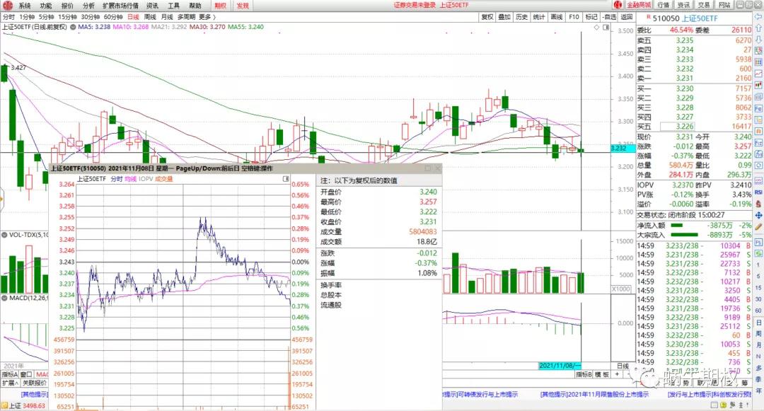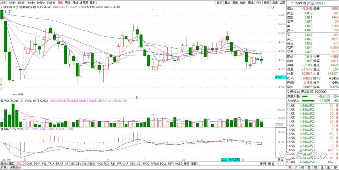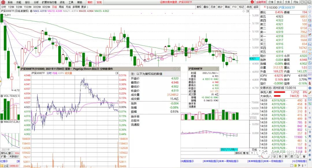 300走势类似,上午上下震荡,下午拉起后缓慢回落,上面各条均线都成为压力位,又刚好回到了5日均线附近。
