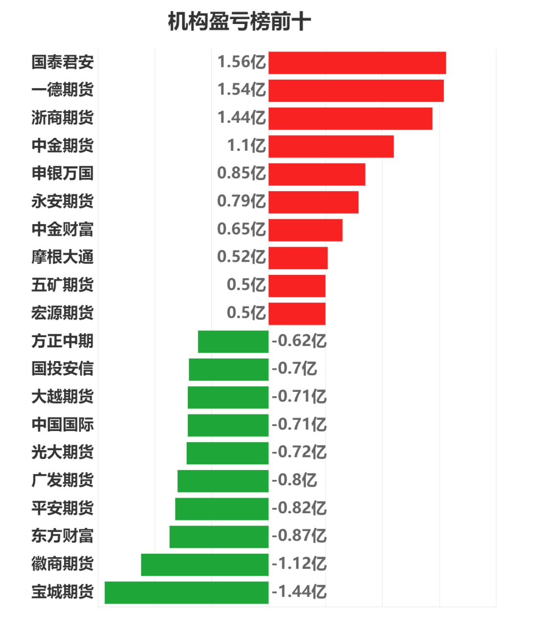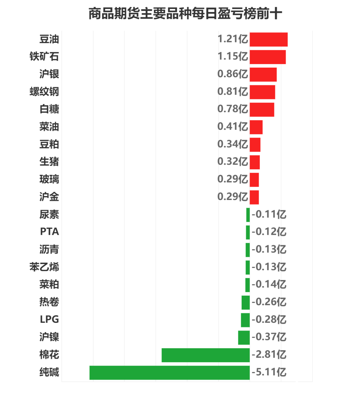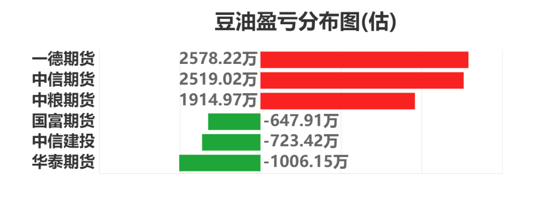每日市场龙虎榜,带你深度了解市场。 市场一览:周一商品期货综合指数下跌0.91%,日内资金净流入18.65亿元。 市场成交量为4317.41万手,成交额为2.35万亿元。 持仓量为4043.95万手,较前一交易日增加101.60万手。 市场成交量前十和持仓量前十如下图所示: ![]() ![]() ![]() 品种盈亏榜:今日商品期货中豆油盈利第一,为1.21亿元。 纯碱亏损第一,为5.11亿元。 ![]() 就豆油而言,今日席位盈利前三为一德期货、中信期货、中粮期货,分别盈利2578.22万元、2519.02万元、1914.97万元。 今日席位亏损前三为华泰期货、中信建投、国富期货,分别亏损1006.15万元、723.42万元、647.91万元。 ![]() 就纯碱而言,今日席位盈利前三为国泰君安、申银万国、瑞达期货,分别盈利7837.59万元、6918.92万元、3213.20万元。 今日席位亏损前三为宝城期货、中信期货、国投安信,分别亏损16114.84万元、14945.21万元、13138.92万元。 ![]() 席位盈亏榜:今日机构席位中国泰君安盈利第一,为1.56亿元。 宝城期货亏损第一,为1.44亿元。 ![]() 就国泰君安而言,今日品种盈利前三为纯碱、甲醇、尿素,分别盈利7837.59万元、4930.72万元、2516.50万元。 今日品种亏损前三为热卷、沪银、玻璃,分别亏损4495.74万元、2361.59万元、1649.28万元。 ![]() 就宝城期货而言,今日品种盈利前三为玻璃、PTA、沪银,分别盈利6038.40万元、996.15万元、877.56万元。 今日品种亏损前三为纯碱、螺纹钢、铁矿石,分别亏损16114.84万元、2370.92万元、2173.15万元。 ![]() (文章来源:东方财富研究中心) (责任编辑:admin) |