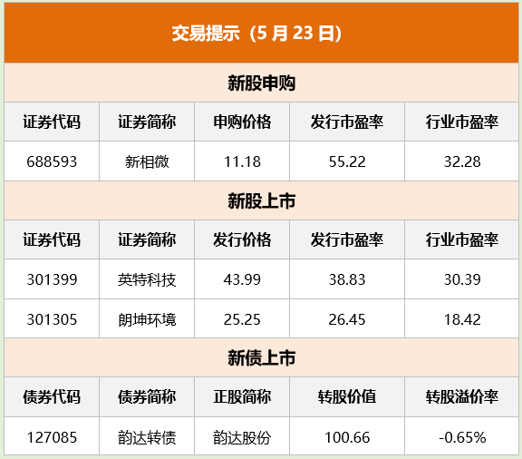 沪深股市:5月22日,沪指涨0.39%,报3296.47点,深成指涨0.32%,报11127.014点,创业板指涨0.07%,报2280.15点。供销社概念股大涨,电力、物流、酿酒板块涨幅居前,游戏、教育板块跌幅居前。 沪深港通:5月22日,北向资金净买入41.32亿元。贵州茅台、宁德时代、工业富联分别获净买入15.43亿元、3.2亿元、2.99亿元。隆基绿能净卖出额居首,金额为2.44亿元。 龙虎榜:5月22日,日内上榜龙虎榜个股中,资金净流入最多的是德明利,为1.04亿元。机构参与龙虎榜中个股共涉及26股,其中11股被机构净买入,安图生物被买入最多,为1.67亿元。另外15股被机构净卖出,万胜智能被卖出最多,为9255.22万元。 融资融券:截至5月19日,上交所融资余额报7989.91亿元,较前一交易日减少13.42亿元;深交所融资余额报7231.75亿元,较前一交易日减少29.71亿元;两市融资余额合计为15221.66亿元,较前一交易日减少43.13亿元。 证券时报:4月下旬以来,随着一季度经济数据陆续披露,市场的“强复苏”预期开始弱化,5月份公布的4月通胀、金融、经济数据等转弱使得“弱复苏”预期进一步强化。在存量博弈思维下,A股的风格轮动或仍延续,在市场震荡磨底阶段,低吸策略或占优。 券商中国:告别“无脑打新”后,打新中签似乎变得更“容易”了。自2022年第三季度以来,沪深两市的网上打新中签率逐季抬升。这背后,或与全面注册制下新股破发现象,打新人数减少有关。 券商中国:拒绝盲目的规模扩张已成为许多基金公司的共识,目前,多家基金公司宣布为旗下明星基金经理减负。业内人士指出,明星基金经理的“减负”将直接提升基金经理的策略容量,避免个股利益在不同产品之间的分布不均,同时基金经理的“减负”也有助于扩大公司团队的稳定性。 中国证券报:最新数据显示,李蓓管理的一只代表产品上周大跌8.54%,近一月已下跌13.96%。有渠道人士透露,李蓓或因重仓了纯碱期货或做多玻璃期货导致产品净值暴跌。半夏投资则回应称:“的确犯了一些错误,在股票上和商品上都犯了一些错误。”而李蓓本人更是回应称,“年化50%的高波动产品回撤10%很稀奇吗?” 证券日报:据不完全统计,5月初至今,已有中国中铁、山东路桥、交建股份等10家基建类上市公司先后发布项目中标公告,中标金额合计1125.46亿元,涉及轨道交通、高速铁路、生态修复工程等领域。 证券日报:二季度新成立公募基金163只,多只央企主题ETF实现超额募集。随着改革红利不断释放,央企上市公司长线投资价值凸显;同时,从央企改革指数来看,当前高盈利、低估值和高股息率等特征比较突出,这也是央企主题基金成为最“吸金”热门产品的原因。 银河证券:在锂价反弹的帮助下,锂矿企业有望迎来估值修复。5月锂电产业链中游材料企业排产预计环比显著回升,低库存下材料企业对上游碳酸锂原材料的补库需求将逐步启动。在下游回暖的预期下碳酸锂价格触底回升,有助于市场对于锂行业企业业绩预期的稳定。 上证报:规模效益稳步提升,30多家沪市中药公司一季度营收同比增长5.68%。核心品种销量、毛利增长是中药企业业绩增长的重要驱动力,而不断加码研发则为药企后续高成长注入更强的“药劲”。