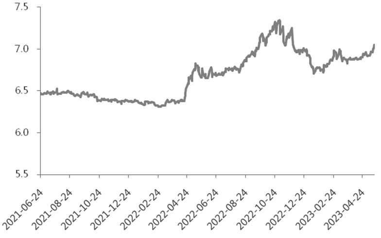 图为美元兑离岸人民币走势 综上,4月经济数据显示国内经济修复速度有所放缓,前期积压需求带动的快速修复阶段已经结束。近期市场仍然是存量资金博弈格局,北向资金、新发基金等出现边际降温,增量资金仍不足。在经济温和复苏、存量资金博弈背景下,指数将以振荡运行为主,向上突破仍需宏观或政策的催化。板块之间将继续轮动,数字经济和中特估仍是全年主线,操作上建议均衡配置,可逢低布局IM和IH。TMT板块4月中旬开始调整,从计算机、电子板块开始,接着通信开始调整,之后传媒板块补跌,调整逐渐到位后,数字经济配置价值将重新凸显。(作者单位:东吴期货) (责任编辑:admin) |
