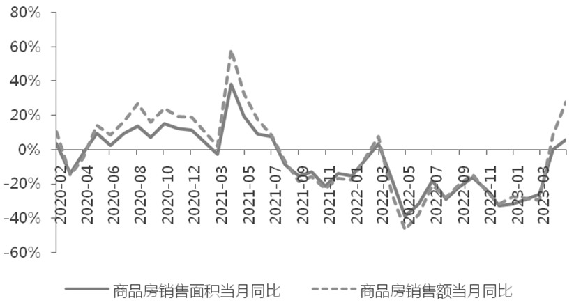 图为商品房销售同比走势 上周A股市场整体呈振荡整理走势,板块轮动较快,上证指数小幅上涨0.34%,科创50指数涨幅为2.57%。成长风格领涨,TMT和中特估出现调整。 经济修复速度放缓 4月经济数据显示国内经济仍在复苏进程中,但修复速度放缓,内生需求仍待提振。部分数据同比改善主要是受去年4月低基数的支撑,如果从两年复合增速看,同比增速大多走低。其中固定资产投资整体下行,主要分项增速出现下滑。地产投资降幅扩大,基建投资增速延续年初以来逐步下降的趋势。制造业投资增速回落反映出当前企业扩产意愿仍需提振。 1—4月份,固定资产投资同比回落至4.7%,低于市场预期的5.2%,4月当月同比为3.6%,较上月下降1.1个百分点,季调环比为-0.64%,连续两个月负增。分项看,4月房地产投资同比下降7.3%,降幅较上月扩大1.4个百分点。4月广义和狭义基建投资当月同比增速均为7.9%,分别较上月回落2个、0.7个百分点。制造业投资当月同比增速为5.3%,较上月回落0.9个百分点。房地产数据方面,4月房地产销售面积同比增速为5.5%,较上月回升5.3个百分点,销售额同比增速为28%,较上月回升19.2个百分点。地产销售同比增速改善主要是由于去年同期基数较低,如果剔除基数影响,4月以来地产销售再度走低,销售面积两年复合增速下降至19.8%,销售额两年复合增速下降至17.3%,降幅均较上月扩大,和高频数据走势一致。根据全国30大中城市商品房销售数据,春节后地产销售明显回暖,但4月出现回落,且5月以来延续下行走势。上周销售数据低于近年同期平均水平,仅好于去年同期。竣工面积同比保持较高增速,新开工面积和施工面积同比继续走低。 消费方面,4月社会消费品零售总额同比增长18.4%,较上月提高7.8个百分点,主要是受到去年低基数的支撑。4月季调环比为0.49%,两年复合增速为2.6%,较上月小幅下降。尽管社零同比继续回升,但消费实际修复速度放缓。4月汽车消费同比大增38%,但两年复合增速为-2.8%,显示在降价促销的刺激下,汽车消费提前释放后,汽车消费景气度有所回落。按消费类型分,4月商品零售同比增长15.9%,餐饮收入增长43.8%,餐饮收入仍保持较高的修复斜率,线下消费场景恢复后,餐饮表现好于商品消费。 生产方面,工业和服务业走低。4月工业增加值同比实际增长5.6%,较3月回升1.7个百分点,但两年复合增速为1.3%,较上月回落3.2个百分点,4月环比为-0.47%。分三大门类看,4月采矿业同比持平,制造业同比增长6.5%,电力、热力、燃气及水生产和供应业同比增长4.8%。从两年复合增速看,三大行业同比增速均有所下滑,制造业下滑幅度较大,较上月下降3.5个百分点至0.8%。4月服务业生产指数同比回升至13.5%,但两年复合增速回落至3.2%。 稳增长政策仍需加力 央行一季度货币政策执行报告认为当前经济增长好于预期,但同时提出经济内生动力不强、需求不足的问题,整体对经济的判断偏乐观。通胀一直是央行关注的重点,但此次报告对通胀的关注度有所下降。今年以来,通胀一直较为温和,4月CPI同比增速回落至0.1%,PPI同比降幅扩大,导致市场对通缩的担忧升温。央行强调“没有出现通缩”,短期内由于经济复苏强度放缓,物价水平预计仍将底部振荡。货币政策基本延续前期稳健的基调,变化不大,本次报告强调“总量适度,节奏平稳”,因此未来政策利率进一步下调的可能性降低。 整体看,在前期积压需求释放后,经济快速修复阶段已经结束,当前经济增长斜率有所放缓。从就业率看,虽然整体就业形势稳定,但结构性问题仍较为突出,16—24岁劳动力调查失业率上行至20.4%,创近年来新高。下一阶段,货币政策调整空间不大,总量政策可能更为平稳,但结构性工具仍有空间。稳增长政策预计更加侧重稳就业、扩内需等方面,改善居民收入、提振实体经济信心。 中长期人民币将再度走强 近两周美元指数持续走强,10年期美债收益率上行至3.68%,黄金价格也出现调整。上周部分美联储官员发表鹰派言论,市场对美联储降息的预期有所下修。根据CME美联储观察,目前市场预计的降息开始时间已经推迟至11月,11月和12月各降息25BP,年内合计降息50BP,较之前9月开始降息且年内降息75BP的预期路径更为谨慎。 市场关注度较高的美国债务上限谈判问题目前尚未取得实质性进展,推升市场避险需求。避险情绪和经济韧性对美元也形成支撑,上周美元兑离岸人民币汇率破“7”,引发市场担忧。人民币贬值一方面是受到美元指数的影响,另一方面是受到国内经济基本面修复放缓的拖累。中国国债收益率小幅下行,中美利差倒挂程度加深,资金流出压力加大,上周北向资金从净流入转为净流出16.91亿元。短期人民币存在贬值压力,但今年大趋势仍然是国内经济动能修复、美联储货币政策转向宽松,因此中长期看,人民币将再度走强。