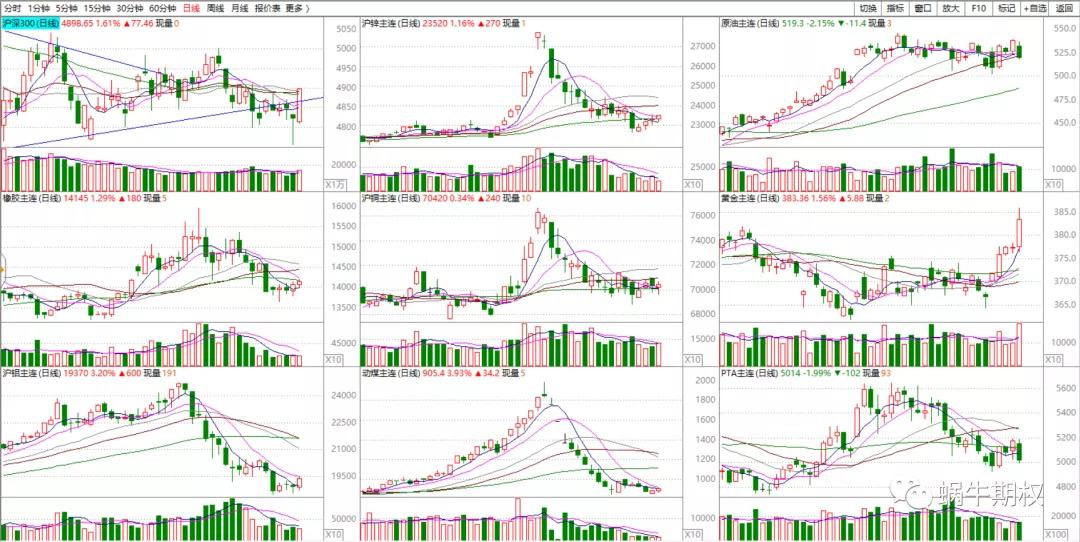 其他品种属于短K线的震荡,日内惊涛骇浪,放日线上看,都很小。