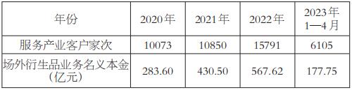 图为场外衍生品业务名义本金(亿元) [A][“期货稳价订单”首创模式惠及中小企业] 中小企业因缺乏管理风险经验,往往被动接受市场价格,抵抗价格风险的能力较弱,在风险管理方面急需帮助。 2021年,在上海期货交易所的支持下,“期货稳价订单”项目首创工业品现货平台与场外衍生品工具的嵌入式融合,把场外衍生工具以产品化的形式呈现给实体产业客户。 在这种创新模式下,南华期货全资风险管理子公司浙江南华资本管理有限公司(以下简称南华资本)通过与上海钢铁交易中心合作,在现货交易平台嵌入场外期权,将服务范围辐射到交易中心超过10万家中小企业。 据介绍,在“期货稳价订单”项目中,有风险管理需求的企业满足适当性评估标准后在南华资本场外业务开户,在交易中心平台进行现货买卖的同时,可直接在平台选择“加购保价”服务,由南华资本利用场外期权满足企业现货买卖过程中的保价需求。 具体操作上,就是当客户买入现货时,为防止价格下跌风险,选择下跌保价服务,即买入看跌期权;卖出现货时,为防止价格上涨风险,可选择上涨保价服务,即买入看涨期权。 “区别于传统的一对一、定制化场外衍生品服务致力于解决单一实体企业特殊性需求,‘期货稳价订单’项目以产品化场外衍生工具致力于解决一群实体企业的普遍性需求。”南华资本相关负责人介绍,随着市场对衍生工具的理解与日俱增,现货交易平台与场外衍生工具的结合也必然成为一种发展趋势,该模式在行业内具有创新性、标杆性等多重意义。 据了解,截至2022年年底,在南华资本完成场外业务开户并实际参与“期货稳价订单”交易企业交易现货数量总计76801吨。 在“期货稳价订单”模式切实帮助客户实现“遇跌则跌、遇涨不涨”或“遇涨则涨、遇跌不跌”稳价效果,降低客户交易风险,实现稳健经营目标的情况下,2022年,南华期货又新增与浙江国际油气交易中心有限公司(以下简称浙油中心)的合作,在上海期货交易所“期货稳价订单”试点项目的支持下,成交石油沥青1万多吨,为油气产业链实体企业稳健经营保驾护航。 在这次项目中,浙油中心作为现货平台,通过预售产能,为市场保障供应。南华资本作为最终风险承接方,提供场外期权产品及服务,同时在期货市场内执行风险对冲等环节。上海期货交易所作为资金支持方,对符合条件的生产加工企业或贸易商提供一定比例的场外期权费用支持。 据介绍,在此种业务模式中,产能发售方,即上游的产能卖方,可以购买符合自身风险管理需求的场外看涨期权,锁定最低销售价,在平台发售亦可拓宽销售渠道,扩大客户群体。产能认购方,即中下游的产能买方,可购买符合自身风险管理需求的场外看跌期权,锁定最高采购价,在线上平台采购亦可拓宽采购渠道,便于获取优质一手资源。 截至2022年年底,通过与浙油中心搭建的“期货稳价订单”平台业务,后续共计有三家产业客户发售了五批次石油沥青“期货稳价订单”,为5433.3万元石油沥青的发售价格进行了价格兜底,其间产生期权权利金109.9万元,实现理赔金额21.34万元。 上述负责人表示,“期货稳价订单”作为南华资本和现货平台的期现联动探索,率先试点的“产能预售+场外期权”模式,受到了市场的广泛关注和欢迎。随着期现联动深入推进,工业品“期货稳价订单”期现结合也将成为一个发展趋势,此项目模式为后续更多的期现双轮驱动创新奠定了坚实基础。 [B][深度服务满足龙头企业多样化需求] 行业龙头企业在资金、管理、人才、制度等方面存在优势,但同时其风险管理需求也更加复杂多样。同时,龙头企业的稳定运营对于行业发展和国计民生来说也意义重大。 在服务重点企业方面,2020年开始,南华期货锁定杭钢集团旗下两家大型国有钢材工贸企业,由南华资本深入展开全方位的融入合作。从基差业务交流、现货贸易往来,到含权贸易尝试、期现结合运用,双方对产业链上下游进行业务延伸,合作涉及钢厂协议拼盘、管厂远期点价、终端项目基差交货、期货仓单交割串换等,多项目落地开花。 例如,2022年年初,华东疫情严重叠加房地产市场低迷,螺纹钢现货需求疲弱,后市价格有下跌风险,钢材工贸企业有高价销售现货变现及套保需求。南华资本与客户沟通后,依托自身衍生品优势结合现货仓储物流情况,设计“三腿期权组合”的方式构建含权套保贸易方案。在实现高位套保需求的同时,保留客户一定区间内价格继续上涨的收益,并根据价格区间采用灵活确定现货购销方向的形式交割,帮助杭钢通过金融工具盘活库存,防范风险的同时提高了经营效率。 “疫情的三年里,我们坚持每周一次线下闭门期现行情研讨会,在众多同行中脱颖而出,与杭钢集团达成战略合作关系。”南华期货相关负责人表示,对于公司来说,三年扎根积累最终形成的合作也带来了众多渠道资源。 南华资本对杭钢集团“沉浸式”订制服务的过程,致力于解决实体经营中的具体问题,体现金融的服务价值,正是把衍生工具嵌入现货平台融合使用的经典案例。该案例对期现结合服务于大型企业提供了实践经验,具有标杆引领意义,为金融服务实体起到了推动作用。 另一个服务龙头企业的典型案例,是南华资本为天然橡胶龙头企业云胶集团设计的“一口价+累计含权”服务方案。在2022年一季度,国内新冠疫情多点暴发,天然