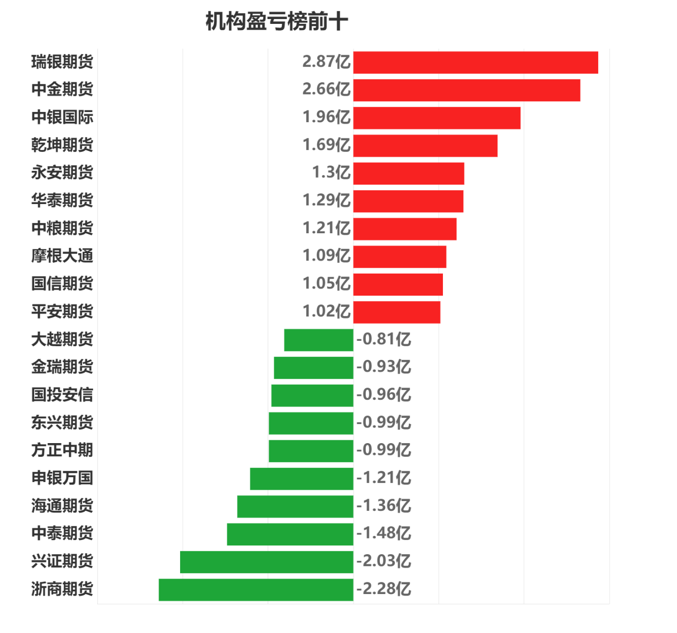 每日市场龙虎榜,带你深度了解市场。 市场一览:周四商品期货综合指数下跌0.67%,日内资金净流出18.70亿元。 市场成交量为3865.76万手,成交额为2.16万亿元。 持仓量为4099.56万手,较前一交易日减少5.50万手。 市场成交量前十和持仓量前十如下图所示: ![]() ![]() ![]() 品种盈亏榜:今日商品期货中纯碱盈利第一,为2.96亿元。 白糖亏损第一,为1.95亿元。 ![]() 就纯碱而言,今日席位盈利前三为平安期货、中信建投、东方财富,分别盈利17230.50万元、16969.01万元、8626.74万元。 今日席位亏损前三为海通期货、华泰期货、方正中期,分别亏损16665.70万元、5783.40万元、4854.36万元。 ![]() 就白糖而言,今日席位盈利前三为国信期货、光大期货、方正中期,分别盈利3334.93万元、3245.90万元、3100.96万元。 今日席位亏损前三为东兴期货、中信期货、国投安信,分别亏损5966.75万元、5606.44万元、5349.02万元。 ![]() 席位盈亏榜:今日机构席位中瑞银期货盈利第一,为2.87亿元。 浙商期货亏损第一,为2.28亿元。 ![]() 就瑞银期货而言,今日品种盈利前三为中证500股指、中证1000股指、沪深,分别盈利15333.26万元、8051.95万元、5235.32万元。 今日品种亏损前三为豆粕、菜粕、豆二,分别亏损672.22万元、656.55万元、26.40万元。 ![]() 就浙商期货而言,今日品种盈利前三为橡胶、甲醇、菜粕,分别盈利1232.47万元、1172.53万元、661.88万元。 今日品种亏损前三为沪深、棉花、螺纹钢,分别亏损3635.36万元、3448.68万元、3239.82万元。 ![]() (文章来源:东方财富研究中心) (责任编辑:admin) |