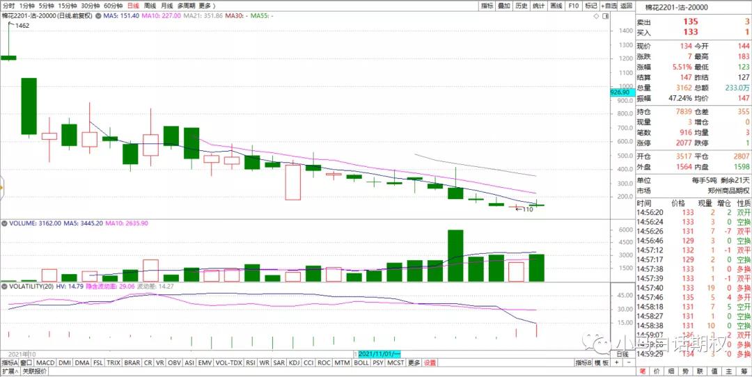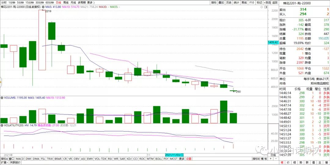 商品期权最近很多品种也归于平静。 比较有意思的是 棉花 这个品种。