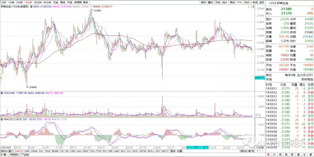 而如果要做期货的话,除非短期内的走势把握比较好能赚点,比如下图的15分钟周期。其他级别都不好赚钱。