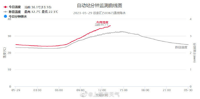 上海气象局:徐家汇站气温36.1℃ 打破百年来五月气温最高纪录 上海市气象局 05月29日 13时09分,徐家汇站气温36.1℃,打破了百年来的五月气温最高纪录,之前最高纪录是35.7℃,分别出现在1876年、1903年、1915年和2018年。(文章来源:上海市气象局) (责任编辑:admin)