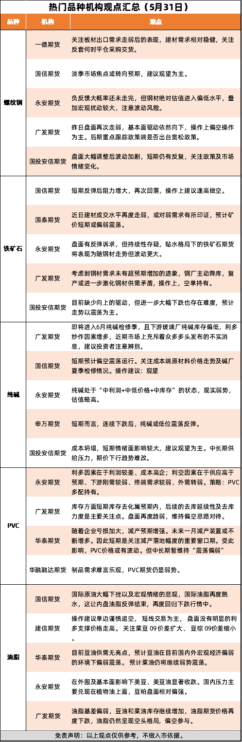 精选 | 热门品种机构观点汇总 5月31日周三