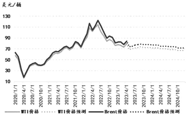 图为全球石油需求预测 [市场展望] 从4月三大机构发布的月报情况来看,OPEC对2023年全球石油供需结构的观点维持不变,而EIA和IEA则不约而同地上调了2023年全球石油需求的增速预估,分别上调12万桶/日和20万桶/日,且两家机构同时下调了2023年非OPEC的石油供应增速预估,分别下调4万桶/日和10万桶/日,这也就导致EIA和IEA分别上调关于2023年Call>EIA预计2023年全球石油市场将累库约35万桶/日,其中二季度预计累库约28万桶/日,但预计下半年全球石油市场将呈现供需平衡的状态。IEA预计自2023年二季度开始,全球原油市场将进入供不应求的格局,其中二季度去库约70万桶/日,而下半年将出现约200万桶/日的供需缺口,预计2023年全球石油供需缺口将达到90万桶/日。 EIA和IEA两家机构的观点表现出一定的分歧,IEA对于2023年全球石油需求增速的预测更偏乐观,且对于非OPEC国家石油供应增长的预测也更为谨慎,所以IEA对于2023年全球石油供需结构的预期更为乐观。两家机构观点的一致性在于,二者均认为在2023年的剩余时间内,供过于求的格局将有所转变,全球石油市场的供需结构将不断向好,一方面全球石油需求仍有一定支撑;另一方面,OPEC开启减产后供应也将进一步收紧,以配合需求的减量,在该基准预测下,油价下方仍有支撑,在不发生系统性金融风险的情况下,后期油价重心预计将有所上移。但考虑海外衰退压力和流动性危机隐忧仍存,油价持续上移的宏观环境并不满足,预计后期油价将呈现重心上移的区间振荡格局。