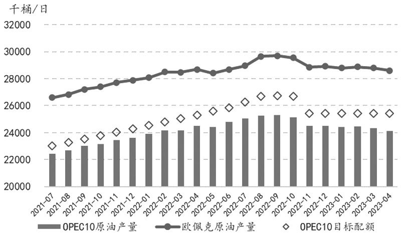 图为OPEC原油产量 供应预测 OPEC月报预计2023年非OPEC石油供应同比增加143万桶/日至6719万桶/日,与4月预估持平。预计2023年供应增长主要来自美国、挪威、巴西、加拿大、哈萨克斯坦和圭亚那,而产量的下降预计主要发生在俄罗斯,但2023年美国页岩油产量增长潜力和计划外的油田维护仍具有不确定性。OPEC月报预计2023年美国石油产量同比增加104万桶/日至2024万桶/日,与4月预估持平;OPEC预计2023年俄罗斯石油产量同比减少75万桶/日至1028万桶/日,与4月预估保持不变。 需求预测 OPEC月报预计2023年全球石油需求同比增加233万桶/日至10190万桶/日,与4月预估持平。 供需平衡 OPEC月报预计2023年Call>[IEA月报] 库存水平 3月,全球可观察到的石油库存下降了790万桶,水上石油库存的激增和非经合组织石油库存的小幅增加未能抵消经合组织石油库存的大幅下降。经合组织石油库存总量大幅下降5560万桶/日至39.76亿桶,为2004年以来的最低水平,较5年平均水平低3.975亿桶。其中,3月经合组织工业石油库存大幅下滑5630万桶至27.53亿桶的6个月低点。 供应预测 IEA预计2023年全球石油供应同比增加120万桶/日至10110万桶/日,与4月预估持平。IEA预计2023年非OPEC石油供应同比增加150万桶/日至6700万桶/日,较4月预估减少10万桶/日。此外,IEA预计,4月至12月OPEC+的石油供应将下降85万桶/日,而非OPEC+的石油供应将增加71万桶/日;IEA预计2023年美国石油产量同比增加94万桶/日至1879万桶/日,较4月预估减少5万桶/日。 IEA预计2023年俄罗斯石油产量同比减少35万桶/日至1074万桶/日,较4月预估增加18万桶/日。4月俄罗斯原油产量基本稳定在960万桶/日,同时其原油出口和炼油厂开工也保持稳定。根据4月初OPEC+联合部长级监测委员会会议后发布的声明,俄罗斯将此前宣布的50万桶/日的原油减产计划延长至年底,减产量参照机构评估的2023年2月的平均生产水平 ,以980万桶/日为基准,这意味着俄罗斯仍必须在5月再削减30万桶/日的产量,以使自己符合这一要求。4月俄罗斯原油、凝析油和天然气凝析液的总产量相对稳定,为1093万桶/日,较2022年2月俄乌冲突爆发之前降低了47万桶/日。 需求预测 IEA预计2023年全球石油需求同比增加220万桶/日至10200万桶/日,较4月预估增加20万桶/日。中国的需求复苏继续超出预期,3月中国的石油需求创下1600万桶/日的历史纪录。 供需平衡 IEA预计2023年全球石油供需缺口为90万桶/日,4月预计2023年全球石油供需缺口为80万桶/日,5月预估供需缺口较4月预估扩大10万桶/日。