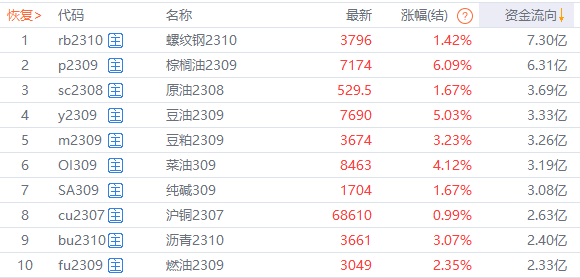 资金流向![]() ![]() 截图时间 11:30 宏观要闻证券时报:国家发改委近期研究部署加强居民增收工作,要求地方发改部门加大稳就业工作力度,发挥好最低工资公司集体协商以及工资指导线等机制作用,强化重点群体支持帮扶,增加低收入者收入,积极探索促进居民增收的有效路径。 国家发改委:6月16日,国家发展改革委新闻发言人孟玮在新闻发布会上表示,今年以来,国家发展改革委聚焦能源电力安全稳定供应,持续加强能源产供储销体系建设。从目前情况看,全国发电装机持续稳定增长,统调电厂存煤达到1.87亿吨的历史新高,做好今年迎峰度夏电力保供有坚实的基础。 财联社:中央气象台6月16日06时继续发布高温黄色预警:预计6月16日白天,华北东部、黄淮中东部及辽宁西部、内蒙古东南部和西部、甘肃西部、新疆东部等地有35℃以上的高温天气,其中,京津冀大部、河南东北部、山东中北部及辽宁西部、内蒙古东南部等地最高气温37~40℃,局地可达40℃以上。 品种资讯钢矿:全国45个港口进口铁矿库存为12849.94,环比增227.68;日均疏港量296.17降4.67。分量方面,澳矿5815.85增108.07,巴西矿4412.21增77.64;贸易矿7739.74增160.26,球团719.93降21.33,精粉1138.39增7.23,块矿1658.35增18.27,粗粉9333.27增223.51;在港船舶数81条增2条。(单位:万吨) 247家钢厂高炉开工率83.09%,环比上周增加0.73个百分点,同比去年下降0.74个百分点;高炉炼铁产能利用率90.32%,环比增加0.65个百分点,同比增加0.17个百分点;钢厂盈利率51.95%,环比增加8.23个百分点,同比增加9.96个百分点;日均铁水产量242.56万吨,环比增加1.74万吨,同比下降0.73万吨。(Mysteel) 大豆:阿根廷布宜诺斯艾利斯谷物交易所称,阿根廷大豆采收完成度98.1%;阿根廷大豆产量预期2100万吨,与之前预估持平。(财联社) 国家粮食交易中心公告,2023年6月20日13:30在国家粮食和物资储备局粮食交易协调中心及联网的各省(区、市)国家粮食交易中心组织开展进口大豆竞价交易,竞价交易进口大豆31.5万吨,生产年限2021年。(新华财经) 煤炭:本周Mysteel统计全国230家独立焦企样本:产能利用率为75.5%增0.3%;焦炭日均产量56.4增0.2,焦炭库存75.0减5.3,炼焦煤总库存659.5增11.6,焦煤可用天数8.8天增0.1天。(单位:万吨)(Mysteel) 棉花:6月16日中国棉花价格指数(CCIndex)至17540元/吨,较上个交易日上调35元/吨。(中国棉花信息网) 截至6月9日,全国棉花商业库存258.14万吨,环比上周减少16.79万吨(降幅6.11%)。其中,新疆市场商品棉175.97万吨,周环比减少15.69万吨(降幅8.19%)。同时,市场预期9月份青黄不接,棉花供应紧张。(证券日报) 鸡蛋:今日主产区山东鸡蛋均价7.99元/公斤,较昨日持平;河北鸡蛋均价7.92元/公斤,较昨日持平;广东鸡蛋均价8.97元/公斤,较昨日持平;北京鸡蛋均价8.65元/公斤,较昨日持平。(中国饲料行业信息网) 小麦:农业农村部小麦机收调度显示,目前全国麦收进度已过九成,进入尾声。(财联社) (文章来源:东方财富研究中心) (责任编辑:admin) |