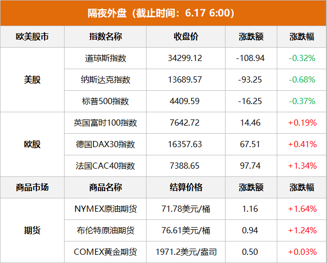 隔夜外盘:美股三大指数集体收跌 热门中概股多数走低 国际油价涨逾1%