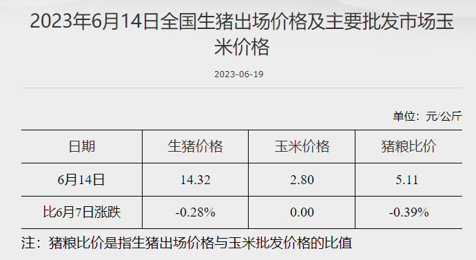发改委:猪粮比价为5.11 较6月7日下跌0.39% 发改委网站 06月19日 据国家发改委数据,截至6月14日,全国生猪出场价格为14.32元/公斤,较6月7日下跌0.28%;主要批发市场玉米价格为2.8元/公斤,较6月7日持平;猪粮比价为5.11,较6月7日下跌0.39%。(文章来源:发改委网站) (责任编辑:admin)