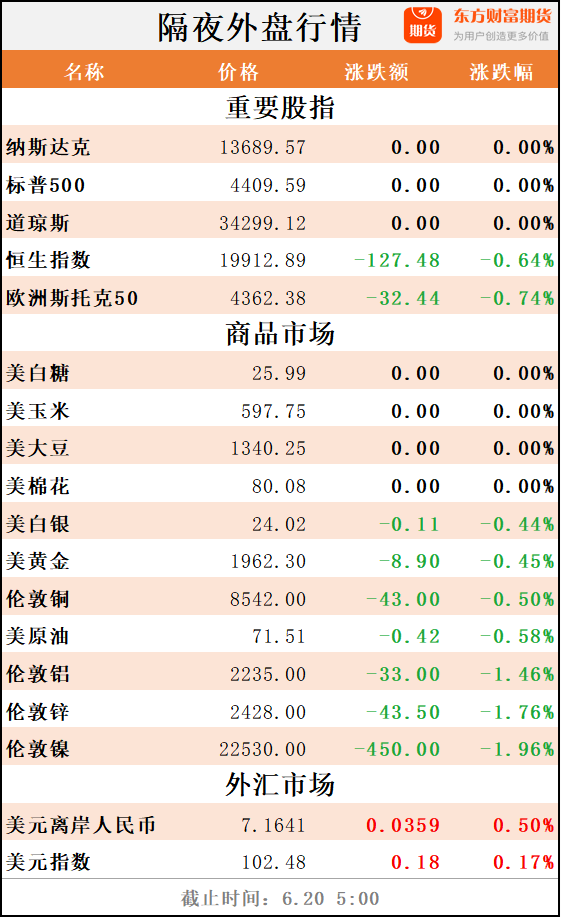 东方财富期货早餐 6月20日 周二