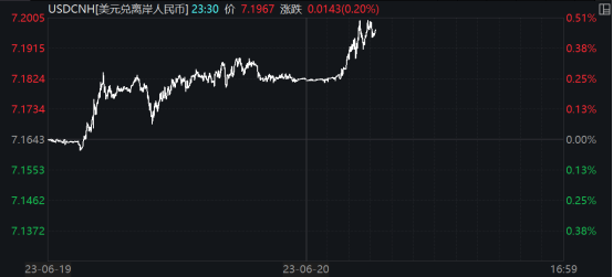 盘中失守7.2元关口! 6月21日上午,人民币对美元汇率继续走低。开盘后,在岸人民币对美元汇率一度下跌超200基点;离岸人民币对美元汇率盘中失守7.2元关口,为2022年11月以来首次。 近期人民币贬值的原因是什么?年内后续人民币汇率走势如何? 在岸、离岸人民币对美元汇率双双回调 人民币对美元汇率中间价已连续两天走弱。外汇交易中心公布数据显示,6月21日,人民币对美元汇率中间价调降199基点,报7.1795元。在前一交易日,6月20日,该中间价调降395个基点。 ![]() 来源:外汇交易中心 中间价走势一定程度上预示了市场汇率走势。6月21日上午,在岸、离岸人民币对美元汇率双双回调。其中,在岸人民币对美元汇率一度下跌超200基点,离岸人民币对美元汇率盘中失守7.2元关口,为2022年11月以来首次。 数据显示,截至11:30,离岸人民币对美元汇率报7.1967元,较前收盘价跌143基点,盘中最低报7.2005元。在岸人民币对美元汇率报7.1927元,较前收盘价跌183基点,盘中最低报7.1987元。截至6月20日,6月以来,离岸、在岸人民币对美元汇率贬值幅度为0.89%、0.96%。 ![]() ![]() 此外,6月21日上午,美元指数略有上涨。数据显示,截至11:30,美元指数涨0.04%,报102.59。 ![]() 外汇交易员表示,小长假临近,市场流动性偏低,购汇需求仍对人民币汇价构成压制。此外,中国调降LPR符合预期,对市场影响有限。 “投资者继续关注鲍威尔的半年度国会证词,人民币汇价短期关注7.2元关口附近的表现。”交易员说。 人民币汇率有支撑 经过上周的升值后,人民币对美元汇率本周重回跌势,未来人民币汇率如何走? “当前经济预期、美元指数等内外因素已经开始发生积极变化,这将有利于人民币汇率摆脱此前的弱势。不过,中美利差倒挂,以及季节性购汇等负面因素仍然存在。因此,我们预计人民币汇率在未来可能会经历一段低位企稳筑底的时间。”中金公司外汇专家李文朗表示,国常会的定调意味着后续稳经济的政策或将陆续出台,政策底或将临近,人民币等风险资产价格有望在经济政策支持下获得一定支撑。 对于降息带来的中美利差进一步倒挂,并令人民币汇率短期承压的担忧,李文朗认为,降息对人民币汇率并非完全利空,随着降息配合后续可期待的更多稳增长政策的出台,国内经济向好的预期有望得到进一步的巩固,进而提振国内资产价格表现,利好人民币汇率。 植信投资首席经济学家兼研究院院长连平表示,下半年,在美元指数可能逐渐走弱的同时,人民币汇率不具备趋势性贬值条件,相反存在一系列支撑因素。“下半年国内GDP增速可能达5%以上,经济基本面是人民币汇率维持基本稳定的基础;国际收支顺差仍可能对人民币汇率基本稳定产生积极作用;此外,人民币国际化将增加国际市场人民币需求,都将对人民币汇率产生支撑作用。” (文章来源:中国证券报) (责任编辑:admin) |