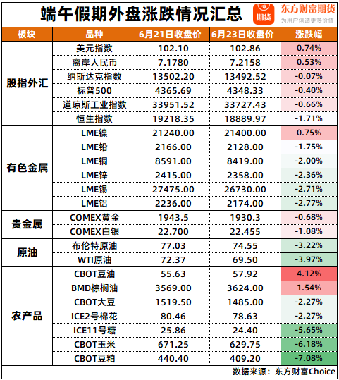 端午节假期外盘行情及重要期货资讯汇总