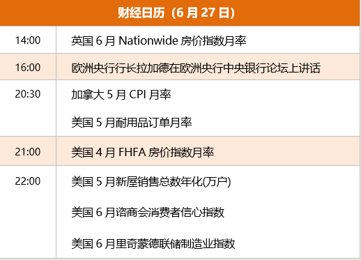 工信部:APEC专精特新中小企业国际合作论坛在广州召开。工信部副部长徐晓兰在论坛上指出,工信部将进一步引导金融机构加大对中小微企业的支持力度,推动持续提高信用贷、首贷和中长期贷款比例。开展“一链一策一批”中小微企业融资促进行动,实施“专精特新”中小企业上市培育工程,完善融资担保降费奖补政策,发挥国家中小企业发展基金政策引导作用,促进中小企业融资。 金融监管总局:印发企业集团财务公司监管评级办法的通知。财务公司监管评级结果的满分为一百分,各部分的分值权重分别为功能定位(15%)、资本管理(10%)、公司治理(20%)、风险管理(30%)、信息科技管理(10%)、集团经营与支持(15%)。 中国证券报:近期理财市场波动加大,部分产品一度净值回落。但业内专家认为,此次债市调整仅为短期的市场变化,调整空间有限,不具备引发银行理财大幅亏损的基础。 环球时报:当地时间6月25日,美国联邦航空管理局已对华盛顿特区的所有机场发布了停飞通知,其中包括里根国家机场、杜勒斯国际机场、巴尔的摩-华盛顿国际机场和里士满国际机场。与此同时,全美多地超市近期都收到了炸弹威胁。打电话的人威胁商家支付礼品卡、现金或是虚拟货币,否则就引爆炸弹。美国执法部门正展开调查。 财联社:本周全球主要央行的掌门人将前往葡萄牙小镇辛特拉,出席一年一度的欧洲央行年度论坛。美联储主席鲍威尔、英国央行行长贝利、欧洲央行行长拉加德和日本央行行长植田和男将有机会“面对面交流”,共同出席一场研讨会。届时,这四位全球主要央行的掌舵者们,无疑有机会与市场人士分享,各自央行进入与通胀作斗争新阶段的更多细节。 财联社:根据美国全国广播公司新闻频道(NBC News)的一项民意调查,在假设的2024年大选巅峰对决中,美国现任总统拜登领先共和党领跑者、前总统特朗普。根据调查,拜登的支持率为49%,而特朗普的支持率为45%。拜登在黑人选民中优势最大,而特朗普在农村选民中优势最大。 第一财经:根据Preqin的数据,全球私募信贷资产规模由2015年时的约5亿美元增长至2022年底的1.4万亿美元。但国际评级机构穆迪投资者服务公司分析师近日发布的报告中警告称,该行业面临“首个严峻挑战”,原因是2021年正值市场鼎盛时期发放的数百亿美元贷款将因利息成本急剧上升和经济放缓而变得紧张。 每经网:受持续强降雨影响,我国最大的淡水湖鄱阳湖水位快速上涨,湖区通江水体面积今年首次突破2000平方公里。6月19日8时至26日8时,7天时间里,鄱阳湖标志性水文站星子站水位上涨了2.5米,湖区通江水体面积扩大了910平方公里。 上海市金融监管局:6月25日,局长周小全会见复星国际董事长郭广昌一行,双方进行了深入交流。将继续为包括复星国际在内的民营企业在公司融资、参与资本市场等方面提供支持,促进上海民营经济更好发展。 上证报:国际金价震荡回落,创下逾2%的四个多月以来最大单周跌幅。业内表示,黄金价格出现显著下跌,其直接压力来自美元的短期反弹。加息进入尾声已经在所难免,美元短期的反弹对于黄金影响有限,作为资产配置的一部分,黄金仍然具备一定的吸引力。 欧盟:计划取消对部分转基因作物的限制,旨在帮助农民应对气候变化。建议将许多改良作物定义为传统作物,而不是现行制度下的转基因作物。计划7月5日提出这项草案,在正式提出之前,相关内容仍有可能被修改。 辉瑞:由于在临床研究中发现患者肝酶升高,将放弃实验性肥胖和糖尿病药物Lotiglipron开发。现在将重点关注其另一种减肥药物danuglipron,该药物的中期试验已完成全部参与者入组。