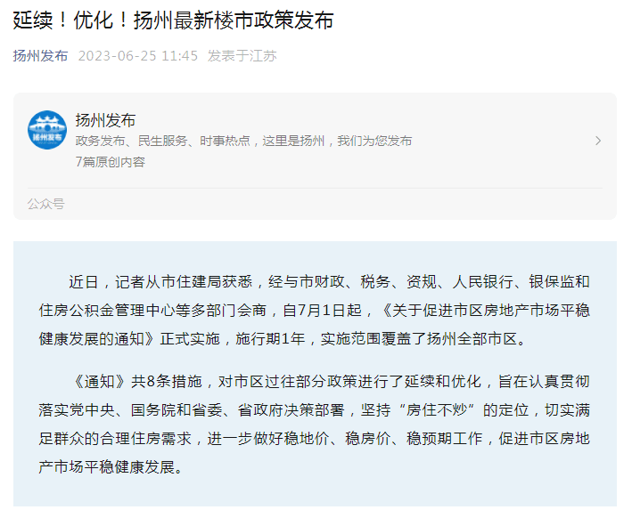 6月26日下午,住房城乡建设部党组书记、部长倪虹会见了来访的中国银行党委书记、董事长葛海蛟一行,就深化政银合作、推动住房和城乡建设事业高质量发展进行交流。倪虹指出,要为人民群众建造好房子,提高住房品质,探索建立房屋养老金制度,为房屋提供全生命周期安全保障。 对此,专家认为,这次明确提出要探索建立房屋养老金制度,对于房屋的管理和金融创新等都有非常大的启发。此类制度建立创造了很多新商业机会,物业公司、中介机构、保险机构、金融机构和建筑企业等都应该关注此类制度。 26日,连云港市房地产市场调控发展领导小组办公室发布《关于进一步促进房地产市场平稳健康发展的通知》,内容包括降低住房公积金贷款首付比例、调整住房公积金贷款额度计算方式、实行商转公贷款带押转贷办理模式、延长购房补贴政策、推进“房票”安置制度等多个方面。 据记者不完全统计,近期已有福建福清、南京六合、沈阳、河南南阳、嘉兴、扬州、连云港等多地发布楼市新政,支持刚性和改善性住房需求,促进房地产市场平稳健康发展。 提高住房品质 房屋养老金制度“胎动” 在与葛海蛟的会见中,倪虹强调,“保交楼、保民生、保稳定”是党中央、国务院作出的重大决策部署,要进一步提高政治站位,增强责任意识,加快推进已售逾期难交付住宅项目建设交付,切实维护购房人合法权益。房地产业发展要从解决“有没有”转向解决“好不好”,改变“高杠杆、高负债、高周转”模式,开展现房销售试点,推动房地产业向新发展模式平稳过渡。 倪虹指出,要鼓励引导金融机构参与城市建设和更新,推动打造宜居、智慧、韧性城市。要为人民群众建造好房子,提高住房品质,探索建立房屋养老金制度,为房屋提供全生命周期安全保障。要抓住数字化转型机遇,加快推进新型城市基础设施建设,让城市更聪明、更智慧。要深化国际交流与合作,助力建筑业企业“走出去”,打造“中国建造”升级版。希望中国银行走在前列,与住房和城乡建设领域开展更加深入广泛的合作。 “此次讲话充分体现了对金融机构业务创新的期待,尤其是涉及到城市更新、房屋养老金制度、数字化转型、建筑企业等领域,也是房地产新发展模式的重要体现。”易居研究院研究总监严跃进表示,此次提及了房屋养老金制度,且用了“探索”两字,“这就要求我们深入理解房屋养老金制度,尤其是从房屋安全保障等角度进行理解。” 将创造很多新商业机会 “此类制度建立将创造很多新商业机会,物业公司、中介机构、保险机构、金融机构和建筑企业等都应该关注此类制度,积极在这个领域做好研究工作,以更好开展相关业务内容。”严跃进说。 据分析,此前住房城乡建设部就明确,要研究建立房屋养老金制度,更好解决既有房屋维修资金来源问题。“从已有表述可以看出,房屋养老金制度和房屋维修等概念有较强的关联。” 严跃进分析认为,对于房屋养老金制度的讨论,和这两年房屋管理等有较大的关系。包括当前小区的燃气爆炸、房屋漏水、房屋承重墙问题、加装电梯等,其实都涉及到房屋管理内容。而此类内容都会涉及到各类资金的问题。所以此类制度的建立,更是需要考虑资金来源和融资的内容。 其中,资金方面的来源,一些城市和学者都有各类实践或创新。比如说宁波明确建立这项制度,其把物业专项维修资金简称为“房屋养老金”。 此前有专业人士建议,可以把当年土地出让收入(地价款)或净收益中提取一定比例的钱来作为房屋养老金。“因此后续此类资金如何实现开源节流,是非常重要的内容。”严跃进认为,如何加强房屋管理,尤其是房屋的建筑安全管理,这是后续房屋养老金制度的重点关注领域。通俗来说,房屋在后续使用中需要有持续的资金进行维护,就类似有养老金一样可以全生命周期进行房屋的维护。其和城市更新、老旧小区改造还是略有差异的。 连云港:首套住房公积金贷款 首付比例降至20% 6月26日,连云港市房地产市场调控发展领导小组办公室发布《关于进一步促进房地产市场平稳健康发展的通知》(以下简称《通知》),内容包括降低住房公积金贷款首付比例、调整住房公积金贷款额度计算方式、实行商转公贷款带押转贷办理模式、延长购房补贴政策、推进“房票”安置制度等多个方面。 这是继今年3月中旬之后,连云港再次发布关于房地产调控方面的通知。 ![]() 具体来看,在住房公积金方面,《通知》明确提出降低住房公积金贷款首付比例,缴存职工家庭购买首套住房进行公积金贷款的,首付最低比例由30%调整为20%。同时取消住房公积金贷款额度与账户余额挂钩的规定,可贷额度按借款申请人及共同申请人的月平均缴存额及剩余工作月数分别计算,期限至2023年12月31日。 同时,申请将个人住房商业贷款余额转成住房公积金贷款的,可选择“带押转贷”方式。对提取住房公积金支付房租的,由按年提取调整为可按年或按月提取。 不仅如此,《通知》还提出,将扩大住房公积金覆盖面,推进为灵活就业人员建立住房公积金账户,提高其购房能力。 在延长购房补贴政策方面,《通知》明确,连云港市区(不含赣榆区)转让二手住房六个月内又购置新建商品住房的,予以补贴一次应缴契税额的100%。对规上企业的产业工人和大专以上学历购房人购买首套住房(