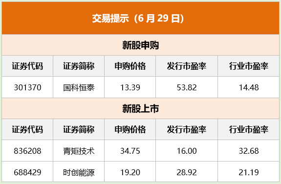 沪深股市:6月28日,沪指平收报3189.38点,深成指跌0.47%,报10926.32点,创业板指跌0.44%,报2182.1点。煤炭、电力、公用事业板块领涨,互联网、教育、软件、传媒、通信等TMT赛道跌幅居前。 沪深港通:6月28日,北向资金净卖出40.72亿元。贵州茅台、宁德时代、金山办公分别获净卖出4.64亿元、2.33亿元、1.73亿元。昆仑万维净买入额居首,金额为5.31亿元。 龙虎榜:6月28日,日内上榜龙虎榜个股中,资金净流入最多的是掌趣科技,三日净流入1.98亿元。机构参与龙虎榜中个股共涉及37股,其中11股被机构净买入,拓维信息被买入最多,为2.26亿元。另外26股被机构净卖出,润达医疗被卖出最多,为1亿元。 融资融券:截至6月27日,上交所融资余额报7871.21亿元,较前一交易日减少5.91亿元;深交所融资余额报7174.04亿元,较前一交易日减少2.07亿元;两市合计15045.25亿元,较前一交易日减少7.98亿元。 证券时报:从当前市场估值和资金面看,市场继续向下的空间有限,主要还是经济放缓预期下的市场信心不足,这需要重点关注财政和货币政策的变化,一旦新一轮的放松政策出台,市场可能迎来报复性反弹,这需要重点跟踪,但结构化仍会是市场主线,不要盲目抄底,只关注受到大资金关注成交活跃的品种。 中国证券报:作为上半年市场最热主线之一,“中特估”行情备受关注。近期,一批央企科技引领ETF陆续成立,还有一批央企现代能源ETF即将发行,这意味着,将有大量增量资金注入市场。 上证报:股市持续震荡之际,外资机构对A股公司的调研如火如荼。5月以来,超过300家A股公司获得外资机构调研。其中,74家为科创板公司,占板块公司家数比例达14%,相较于创业板和主板公司占比7%和5%,科创板公司明显更受外资机构的青睐。 中国证券报:从券商人士处独家获悉,投保基金近期向证券公司投行部门征询了对退市公司挂牌转让相关制度的看法和意见、实践中存在的问题及建议,从而评估退市有关制度实施情况,为监管部门提供政策参考。据了解,股票退市后,投资者在确权登记过程中遇到的问题或困难受到投保基金的关注。