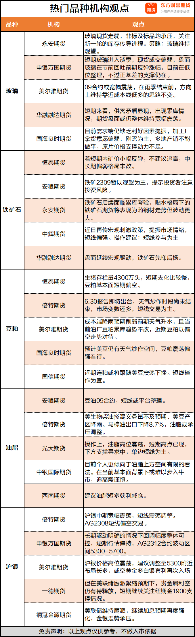 热门品种机构观点![]() 黑色系期货铁矿供需足够健康,玻璃供需矛盾显现(华泰期货) 螺纹钢出现累库迹象,焦炭提涨有望落地(南华期货) 农产品期货生猪强预期弱现实并未改变,油厂豆粕累库趋势不改(美尔雅期货) 棉花市场传闻较多,苹果交易核心依然是新季度的产量预估(国投安信期货) 有色/贵金属期货铜市场情绪偏向谨慎,锌供需基本面偏弱(弘业期货) 铝低库存、底仓单暂难扭转,镍供应过剩预期压制(新湖期货) 能化期货MEG现货端流动性转宽松,纯碱新产能近日将出产品(国海良时期货) 甲醇供应略有缩减,PTA驱动指引不足(国信期货) (文章来源:东方财富研究中心) (责任编辑:admin) |