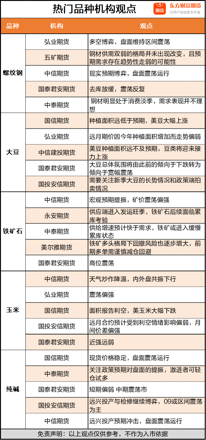 热门品种机构观点![]() 黑色系期货双焦期货价格中期弱势尚未逆转(西南期货) 宏观预期兑现有限 钢材上行驱动减弱(美尔雅期货) 农产品期货国内豆粕现货成交量创历史记录(国海良时期货) 内外糖倒挂 减产等供给收缩支撑内糖价格仍在(中泰期货) 有色/贵金属期货铜高位震荡 电解铝复产加速 氧化铝震荡偏强运行(国信期货) 预计贵金属价格会呈现震荡偏弱的走势(五矿期货) 能化期货随远兴投产 现货有降价预期(一德期货) 下半年供需持续收紧 关注沙特减产兑现(华泰期货) (文章来源:东方财富研究中心) (责任编辑:admin) |