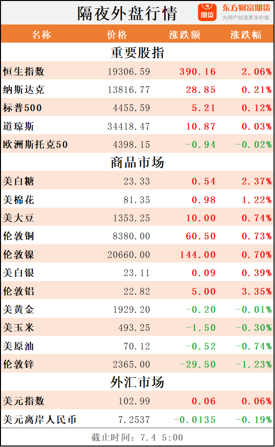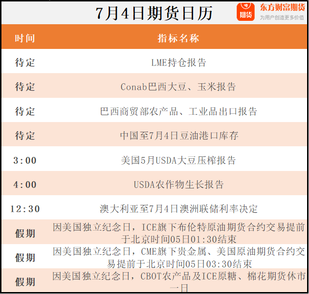 东方财富期货早餐 7月4日 周二