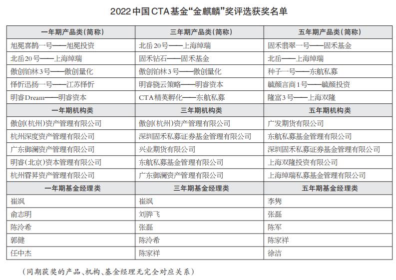 2022中国CTA基金“金麒麟”奖出炉