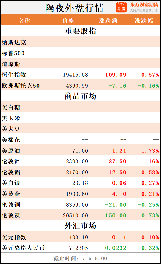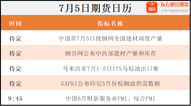 东方财富期货早餐 7月5日 周三