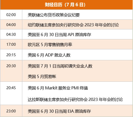 北京市委、市政府:日前印发《关于更好发挥数据要素作用进一步加快发展数字经济的实施意见》。实施意见提出,完善人工智能数据标注库,探索打造数据训练基地,促进研发自然语言、多模态、认知等超大规模智能模型。 国资委:近期建立国有企业经济运行圆桌会议沟通交流机制。7月5日,国务院国资委党委书记、主任张玉卓主持召开国有企业经济运行圆桌会议第一次会议,会上,企业负责同志作了发言,交流了当前企业经济运行情况、国内外环境变化给企业发展带来的机遇和挑战,并围绕如何进一步支持企业推进技术创新、深化企业改革、发展战略性新兴产业等提出有针对性的意见建议。 证券时报:6月中国服务业景气度连续第六个月高于临界点,但增速放缓,与需求转弱有关。6月财新中国通用服务业经营活动指数录得53.9,较前月回落3.2个百分点,已经连续六个月位于扩张区间,不过为六个月次低,仅高于2023年1月。 教育部:2022年全国共有幼儿园28.92万所,同比1.90%下降。其中,普惠性幼儿园24.57万所,同比增长0.42%,占全国幼儿园的比例84.96%。学前教育在园幼儿4627.55万人,比上年减少177.66万人,同比下降3.70%。其中,普惠性幼儿园在园幼儿4144.05万人,同比下降1.76%。 金融时报:近期,人民币汇率波动引发市场关注。我国6月银行结售汇和银行代客涉外收付款同时呈现小幅顺差,对外汇市场供求保持基本平衡提供了有力支撑,同时,今年以来境外投资者持有人民币债券情况持续向好,6月外资净买入境内债券延续前几个月的较高规模。在国际金融市场延续波动走势的背景下,人民币债券的长期投资价值凸显。 中国证券报:近期,多地发放消费券,进一步促进消费。消费券促消费的作用明显,中国银联发布的《中国银行卡产业发展报告(2023)》显示,2022年银联依托云闪付APP,全年为285个省、市、区县市发放政府消费券,带动交易规模近500亿元,直接参与领取用户数突破4100万。 第一财经:近阶段,随着存款利息不断调降,银行揽储压力逐渐加大。恰逢6月底银行季末业绩考核时点,那些游走于银行、存款方之间的资金掮客开始活跃。除存款以外,养老金账户、数字人民币注册等各类待完成指标成为了掮客们新的生意,在一些网购平台上明码标价“出售”。而在掮客助推背后,隐藏诸多风险。 21财经:日前,市场流传近几个月来多家国有大型银行已开始向符合要求的地方政府融资平台新增25年期的贷款,现行大多数企业贷款为10年期。部分贷款在前四年暂免支付利息或本金,不过利息将在之后累计。对于该传言,多位接近大行人士表示,该传言不实。 澎湃新闻:受7年前“全面二孩”政策等传导效应影响,今年全国多地集中出现小学入学高峰。青岛的小学入学新生较上一年增加超三成,杭州同比增长约两成。2023年将是杭州近年来小学一年级新生入学最严峻的一年,杭州小学新生入学人数预计在15万人左右(去年约12.5万人)。 财联社:根据美国国家环境预测中心的数据,7月3日全球平均气温达到17摄氏度,略高于2016年8月创下的16.9摄氏度的纪录;7月4日,全球平均气温便直接冲向了17.2摄氏度。创新高的气温数据表明了2023年北半球夏季所面临的极端情况,同时也给人类敲响警钟,全球在遏制排放方面进展缓慢。 新华财经:受到服务业扩张放缓的影响,欧元区6月采购经理人综合指数PMI终值下修,并跌破了50荣枯线。这也使得欧元兑美元上攻1.0900大关的努力再次夭折。专家表示,有很多迹象表明未来几个月欧元区增长将继续放缓,但可能的经济衰退将是温和的。 日本厚生劳动省:2022年有儿童的家庭数为991.7万户,首次低于1000万户。在所有家庭的占比也比2019年的上轮大规模调查下降3.4个百分点至18.3%,创历史新低。上述数据再度反映出少子化的加速。“老人护理老人”比例创历史新高,达到63.5%。 河北省气象台:7月5日17时24分继续发布高温红色预警信号,预计明天白天,保定、廊坊及以南地区最高气温可达37-39℃,其中保定南部、雄安新区、石家庄、沧州西部、衡水、邢台、邯郸可达40-43℃。