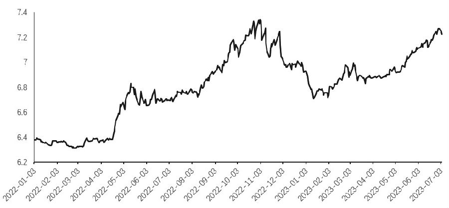 图为美元兑离岸人民币汇率走势 人民币汇率有望企稳 站在当前时点来看,我们认为,下半年人民币汇率有望重回合理均衡水平附近,外资流出压力减弱。原因在于:1.下半年稳增长组合政策有望继续出台,中国经济复苏预期将得到改善。而美国下半年经济下行压力加大,尤其是四季度美国经济存在衰退的风险,中美经济基本面将发生强弱转换,由此将支撑本币汇率。2.相比较于央行一季度例会,央行二季度例会提出,要“综合施策、稳定预期,坚决防范汇率大起大落风险”,这有利于防止汇市“羊群效应”,引导汇率稳定。3.美联储加息周期步入尾声,三季度后美联储或正式停止加息,美债收益率或将先于政策利率下行,中美周期利差对汇率的压制有望逐步消散。 综合来看,我们认为,在经历了经济基本面、政策预期、外部压力的阶段性调整后,当前市场已充分定价预期,期指振荡筑底过程接近完成。站在下半年伊始这一时点,当前期指正面临着重要的拐点,后续股指有望摆脱振荡调整格局,进入相对流畅的趋势性上升行情。(作者单位:恒泰期货) (责任编辑:admin) |
