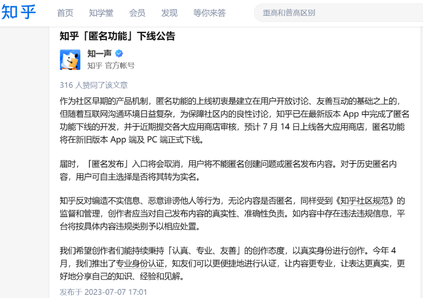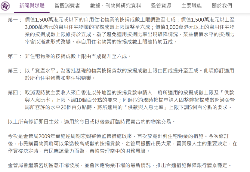 针对楼市,香港出招了! 7月7日,香港推出楼市救市政策。香港金管局当天向银行发出指引,调整自用物业按揭成数、非住宅物业可造按揭成数、放宽以资产水平为审查基础的按揭成数等。这是香港金管局2009年实施逆周期宏观审慎监管措施(即楼市辣招)以来,首次放宽针对住宅物业的措施。 同日,知乎发文宣布,将正式下线“匿名功能”。届时,匿名发布入口将会取消,用户将不能匿名创建问题或匿名发布内容。此前,知乎匿名机制曾在互联网引起热议。 与此同时,美国两大社交媒体巨头,也要“干架”了。当地时间7月5日,Meta公司推出了一款名为Threads的社交软件,上线后单日注册用户迅速突破3000万。当天,马斯克(推特的老板)的私人律师向扎克伯格发了一封正式信件,声称Meta在开发Threads的过程中窃取了推特的商业机密,威胁要将Meta告上法庭。 香港放宽楼市政策 香港金管局7月7日向银行发出指引,修订适用于物业按揭贷款的逆周期宏观审慎监管措施。这是香港金管局2009年实施逆周期宏观审慎监管措施(即楼市辣招)以来,首次放宽针对住宅物业的措施。 ![]() 综合各方面的考虑,香港金管局认为,在继续维持银行体系稳定及物业按揭贷款风险得到妥善管理前提下,现时有空间修订部分物业按揭贷款的逆周期宏观审慎监管措施: 第一,价值1500万港元或以下的自用住宅物业的按揭成数上限调整至七成;价值1500万港元以上至3000万港元的自用住宅物业的按揭成数上限调整至六成;价值3000万港元以上的自用住宅物业的按揭成数上限维持于五成。为了避免适用按揭比率出现骤降情况,某些楼价水平的按揭比率会以渐进形式改变。非自用住宅物业的按揭成数上限维持于五成。 第二,非住宅物业的按揭成数上限由五成提升至六成。 第三,以“资产水平”为审批基础的物业按揭贷款的按揭成数上限由四成提升至五成。此项修订适用于所有住宅物业和非住宅物业。 第四,取消现时就主要收入来自香港以外地区的按揭贷款申请人,将所适用的按揭成数上限及“供款与入息比率”上限下调10个百分点的要求;同时取消现时按揭申请人因整体按揭成数超过金管局所容许的水平20个百分点时,将所适用的“供款与入息比率”上限下调5个百分点的要求。 以上所有修订即日生效,适用于今日或以后签订临时买卖合约的物业交易。 对于此次放宽楼市政策的原因,香港金管局指出,受新冠疫情和息口上升影响,住宅楼价在2022年开始调整,今年初纵有反弹,但市场数据显示,截至6月底,整体住宅楼价较2021年高位累计下跌13%。非住宅物业市场的情况亦相近似。根据差饷物业估价署最新公布的统计资料,写字楼、分层工厂大厦及零售物业的价格比2018-2019年高峰期分别下跌20%、8% 及17%。外围环境方面,主要经济体仍然面对较大通胀压力,利率可能在往后一段时间仍处于较高水平,环球经济若因利率高企而放慢增长,本地经济难免也会受到影响。 据香港经济日报报道,香港财政司司长陈茂波6月份就曾透露,正与香港金管局研究措施,主要聚焦帮助买楼自用的市民,包括换楼人士,并形容政策属微调。 陈茂波当时表示,按揭成数是否能进一步放宽视乎物业价值,而目前中小型单位若申请按揭保险,已经差不多可作九成按揭,并称,“有朋友反映,建立家庭之后有小朋友,想换楼有个大一点的单位。这方面是否能够考虑,究竟划界在哪里,我们正在考虑。” 知乎将下线匿名功能 7月7日下午,知乎发布公告称,匿名功能将正式下线。 ![]() 知乎表示,作为社区早期的产品机制,匿名功能的上线初衷是建立在用户开放讨论、友善互动的基础之上的,但随着互联网沟通环境日益复杂,为保障社区内的良性讨论,知乎已在最新版本APP中完成了匿名功能下线的开发,并于近期提交各大应用商店审核,预计 7月14日上线各大应用商店,匿名功能将在新旧版本APP端及PC端正式下线。 届时,“匿名发布”入口将会取消,用户将不能匿名创建问题或匿名发布内容。对于历史匿名内容,用户可自主选择是否将其转为实名。 知乎称,反对编造不实信息、恶意诽谤他人等行为,无论内容是否匿名,同样受到《知乎社区规范》的监督和管理,创作者应当对自己发布内容的真实性、准确性负责。如内容中存在违法违规信息,平台将按具体内容违规类别予以相应处置。 值得关注的是,国家网信办7月7日就《网络暴力信息治理规定(征求意见稿)》公开征求意见。意见稿拟规定,网络信息服务提供者应当加强对网络社区版块、网络群组的管理,不得在词话、群组、贴吧等环节集纳网络暴力信息,禁止创建以匿名投稿、隔空话等名义发布导向不良等内容的话题版块和群组账号。 此前,知乎匿名机制曾在互联网引起热议。6月20日,亿欧网创始人黄渊普在微信朋友圈发文,抨击知乎的匿名诽谤现象及其反证规则存在问题。6月21日,黄渊普发布公开信,实名举报知乎创始人兼CEO周源。6月22日,知乎创始人、董事长兼CEO周源在朋友圈回应了知乎匿名功能的争议,并表示将在近期对该功能作出调整。 “推特杀手”一天拿下3000万用户 两大社交媒体巨头,要相互“厮杀”了? 日前,Meta首席执行官扎克伯格收到了一封来自马斯克私人律师的“警告信”。 当地时间7月5日,Meta公司推出了一款名为Threads的社交软件,上线后单日注册用户迅速突破3000万,并且热度不减。Meta此举,引发了推特的强烈