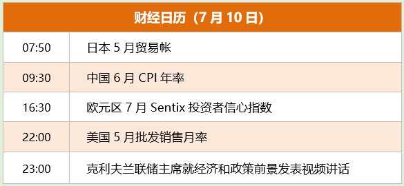 新华社:中共中央总书记、国家主席、中央军委主席习近平近日在江苏考察时强调,江苏拥有产业基础坚实、科教资源丰富、营商环境优良、市场规模巨大等优势,有能力也有责任在推进中国式现代化中走在前、做示范。要完整准确全面贯彻新发展理念,继续在改革创新、推动高质量发展上争当表率,在服务全国构建新发展格局上争做示范,在率先实现社会主义现代化上走在前列,奋力推进中国式现代化江苏新实践,谱写“强富美高”新江苏现代化建设新篇章。 商务部:日前,世贸组织投资便利化谈判召开大使级会议。《投资便利化协定》文本谈判成功结束。《投资便利化协定》是全球首个多边投资协定,主要规则包括提升投资政策透明度,简化行政审批程序,促进跨境投资便利化合作和推动可持续发展等。该协定将有助于提升全球投资便利化水平,推动全球投资更加顺畅流动。 财政部:经中美双方商定,美财政部部长耶伦于7月6日至9日访华,这是落实中美元首巴厘岛会晤重要共识,加强两国财金领域沟通交流的具体举措。中美经贸关系的本质是互利共赢,贸易战、“脱钩断链”没有赢家。我们希望美方以实际行动为两国经贸关系健康发展、实现互利共赢创造良好环境。 工信部:根据国务院部署安排,近期工信部建立与专精特新中小企业沟通交流机制,加强对企服务工作,助力中小企业高质量发展。工信部党组书记、部长金壮龙主持召开专精特新中小企业圆桌会议,认真听取企业经营发展情况、困难问题和意见建议,就促进专精特新发展进行了深入交流研讨。副部长徐晓兰出席会议。 央行:为规范中央银行存款账户服务和管理,提高央行货币结算服务的透明度、公平性和可获得性,央行制定发布《中央银行存款账户管理办法》。《办法》共六章43条,统一了中央银行存款账户的分类、开户条件和评估标准,提升了获得央行账户服务的可预期性和便捷性;明确了央行存款账户开立、变更、撤销及使用管理要求,实施账户全生命周期管理。 生态环境部:对《温室气体自愿减排交易管理办法(试行)》公开征求意见,征求意见稿提出,中华人民共和国境内登记的法人和其他组织,可以依据本办法开展温室气体自愿减排活动,申请温室气体自愿减排项目和减排量的登记。符合国家有关规定的法人、其他组织和个人,可以依据本办法开展温室气体自愿减排交易活动。 国家外汇局:截至2023年6月末,我国外汇储备规模为31930亿美元,较5月末上升165亿美元,升幅为0.52%。2023年6月,受主要经济体货币政策及预期、全球宏观经济数据等因素影响,美元指数下跌,全球金融资产价格涨跌互现。汇率折算和资产价格变化等因素综合作用,当月外汇储备规模上升。我国经济回升向好态势明显,高质量发展稳步推进,有利于外汇储备规模继续保持基本稳定。 海关发布:当前,日本核污染水排海问题已成全球关注焦点,也引起中国消费者对自日本进口食品安全的担忧。中国海关将保持高度警惕,以对国内消费者绝对负责为原则,视事态发展及时采取一切必要措施,确保中国消费者餐桌上的安全。 证券时报:监管部门新近向各地银保监部门下发了信托业务分类配套政策,相关内容将由各地银监向属地信托公司传达。上述政策明确了资产管理信托正回购及衍生品业务开展标准,成为信托公司标品业务的直接利好。针对非标投资,政策表示,资产管理信托原则上应当以组合投资方式分散风险,监管部门将完善相关配套制度,明确组合投资相关要求。 界面新闻:美国6月季调后非农就业人口增加20.9万人,为2020年12月以来最小增幅,预估为增加23万人,前值为增加33.9万人。美国6月失业率为3.6%,预估为3.6%,前值为3.7%。美国6月失业率为3.6%,预估为3.6%,前值为3.7%。 界面新闻:美国国防部发言人表示,美国目前有锗的战略储备,但没有镓的库存储备。该发言人表示:“美国国防部正在积极采取措施,利用《国防生产法》第三章的授权,增加国内对微电子和太空供应链关键材料的开采和加工,包括镓和锗。” 央视新闻客户端:近期,美国、英国、法国等频频出现高温天气,部分地区不断刷新高温纪录。气象专家警告称2023年可能是有记录以来最热的一年。世界气象组织发布报告称,热带太平洋地区7年来首次形成厄尔尼诺条件,预计今后全球大部分地区气温将进一步升高,可能在5年内出现创纪录高温,各国应做好应对相关气候事件的准备。 农业农村部、中国气象局:7月9日联合发布早稻高温热害风险预警。预计未来10天,江南、华南多35℃以上高温天气,高温日数有7-9天,湖南、江西、浙江、福建等地的部分地区可达38-40℃。处于灌浆乳熟期的早稻遭受高温逼熟的风险较高。