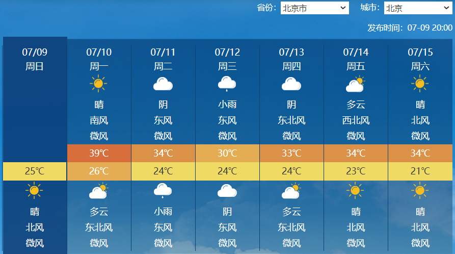 当前高温热浪持续席卷北方,气象部门预测2023年或成为历史上最热夏季。7月10日6时,中央气象台继续发布高温橙色预警,并预计7月10日白天,北京东南部、河北南部、河南北部及浙江东部、福建东部等局地可达40℃以上。 与此同时,以热字为招牌的“三伏天”即将开启!今年是7月11日入伏,而且又是超长待机的40天,历史观测数据显示江淮江南常年在这个时段高温占比确实最高,名副其实的热在“三伏”。 北京等局地最高温达40℃以上 据中国天气网7月10日报道,中央气象台7月10日06时继续发布高温橙色预警:预计7月10日白天,西北地区东部、华北大部、黄淮、江汉、江南、华南大部以及四川盆地等地有35℃以上的高温天气,其中,华北东部、黄淮中北部、江南中北部和东部及四川盆地中南部等地部分地区最高气温37~39℃,北京东南部、河北南部、河南北部及浙江东部、福建东部等局地可达40℃以上。 ![]() 据中国天气网7月9日报道,本周二,7月11日,今年的三伏大幕将正式开启。在雨水到来前,今明两天,华北、黄淮一带依旧会有高温出没,并且还将和南方的高温区连成一整片。12日,受降雨和冷空气的共同影响,北方高温天气将明显减弱。 明后两天,由于长江中下游降雨减少,这里的最高气温会迅速攀升到35℃以上。此外,在副热带高压的强势掌控之下,江南、华南等地高温还会耐力持续。 中央气象台预计,未来10天,江南、华南等地多35℃以上高温天气,高温日数一般有7~9天,且湿度较大,体感闷热,其中,湖南、江西、浙江、福建等地的部分地区可达38~40℃。
