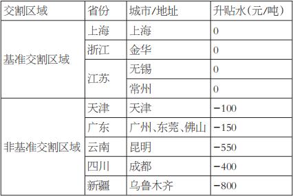 [交割标准及升贴水] 基准交割品:达到《中华人民共和国国家标准—工业硅》(GB/T 2881-2014,下称《工业硅国标》)规定牌号为Si5530(名义硅含量≥98.7%、铁含量≤0.50%、铝含量≤0.50%、钙含量≤0.30%),粒度为10—100mm的工业硅。其中,粒度偏差筛下物不大于5%,筛上物不大于5%。 替代交割品及升贴水:达到《工业硅国标》规定牌号为Si4210(名义硅含量≥99.3%、铁含量≤0.40%、铝含量≤0.20%、钙含量≤0.10%),粒度为10—100mm的工业硅。其中,粒度偏差筛下物不大于5%,筛上物不大于5%,升水2000元/吨。 [交割区域及升贴水] 根据广期所《关于征集工业硅期货指定交割库的通知》,工业硅期货基准交割区域为上海市、江苏省、浙江省,非基准交割区域为天津市、广东省、四川省、云南省、新疆维吾尔自治区。各交割区域升贴水如下表所示: