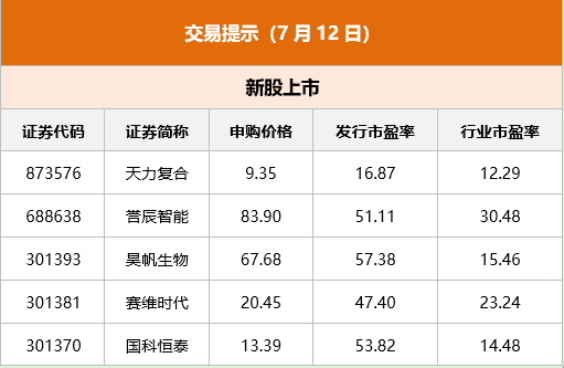 东方财富财经早餐 7月12日周三