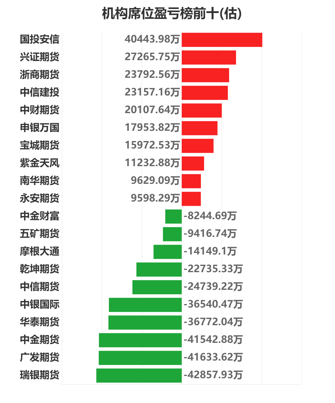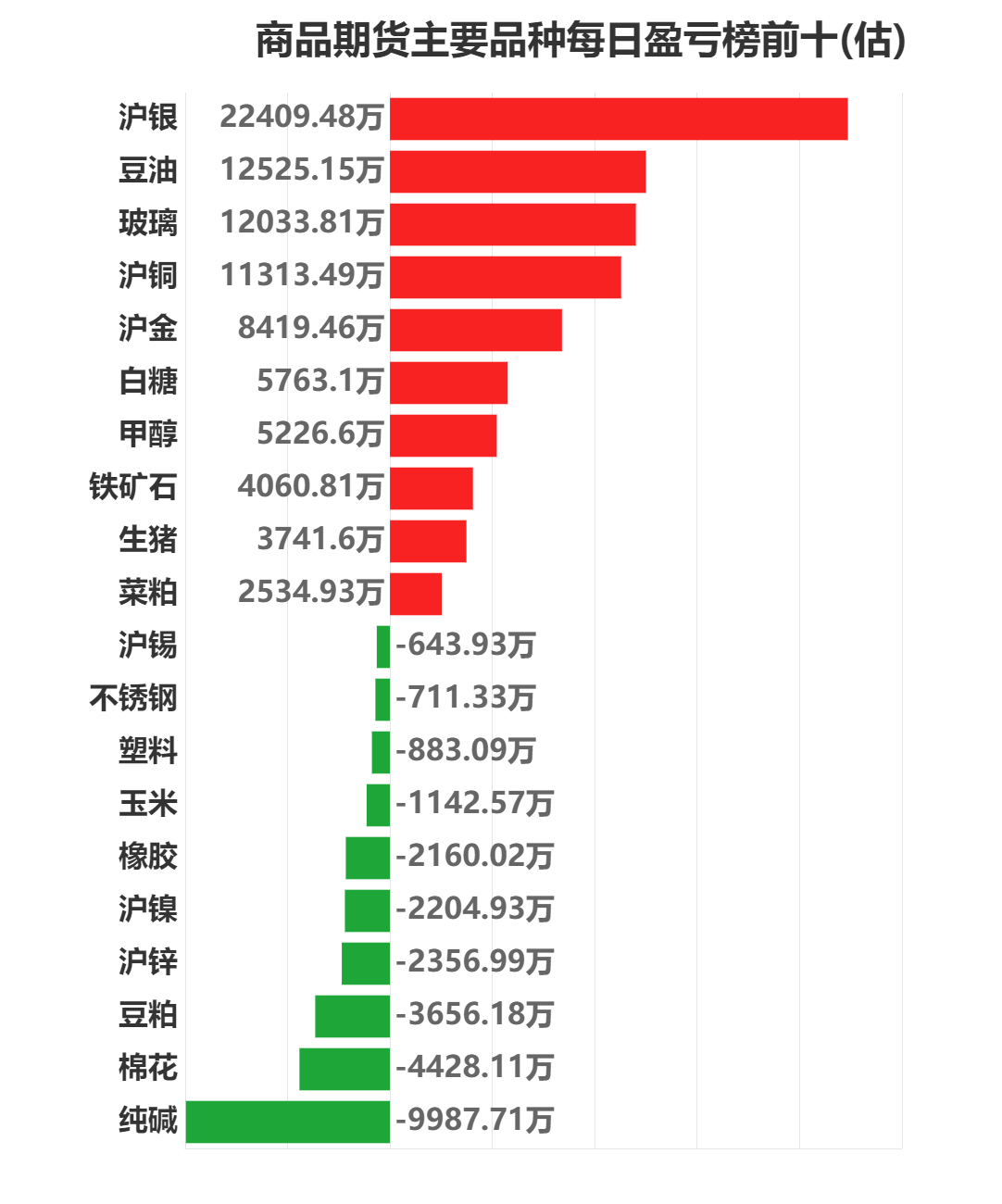 每日期货龙虎榜,带你深度了解市场。 市场一览:周四商品期货综合指数上涨1.06%,日内资金净流入60.28亿元。 市场成交量为3298.88万手,成交额为2.00万亿元。 持仓量为4267.19万手,较前一交易日增加5.34万手。 市场成交量前十和持仓量前十如下图所示: ![]() ![]() ![]() 品种盈亏榜:今日商品期货中沪银盈利第一,为22409.48万元。 纯碱亏损第一,为9987.71万元。 ![]() 就沪银而言,今日盈利前三席位为中财期货、宝城期货、国投安信,分别盈利11347.93万元、3045.55万元、3017.03万元。 今日亏损前三席位为五矿期货、国贸期货、平安期货,分别亏损3668.97万元、2052.37万元、1627.31万元。 ![]() 就纯碱而言,今日盈利前三席位为宝城期货、大地期货、中信期货,分别盈利5794.50万元、2727.34万元、2527.15万元。 今日亏损前三席位为东亚期货、东吴期货、国泰君安,分别亏损5613.30万元、4256.86万元、3352.96万元。 ![]() 席位盈亏榜:今日机构席位中国投安信盈利第一,为40443.98万元。 瑞银期货亏损第一,为42857.93万元。 ![]() 就国投安信席位而言,今日盈利前三品种为中证500股指、豆油、沪铜,分别盈利16403.30万元、5899.09万元、4069.98万元。 今日亏损前三品种为棉花、玻璃、棕榈油,分别亏损961.17万元、640.49万元、559.89万元。 ![]() 就瑞银期货席位而言,今日盈利前三品种为沪银、铁矿石、沪锌,分别盈利964.53万元、397.38万元、396.90万元。 今日亏损前三品种为沪深、中证500股指、中证1000股指,分别亏损17100.27万元、16258.20万元、8805.97万元。 ![]() 注:可通过点击东方财富期货APP资讯页面“龙虎榜”及东方财富期货PC端左侧“龙虎榜”查看各类机构持仓及盈亏榜单信息。 ![]() ![]() 以上图表数据来源:东方财富Choice (文章来源:东方财富研究中心) (责任编辑:admin) |