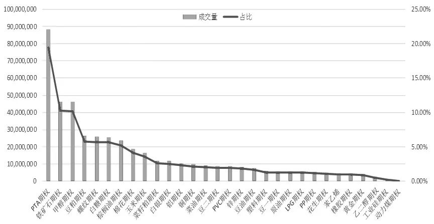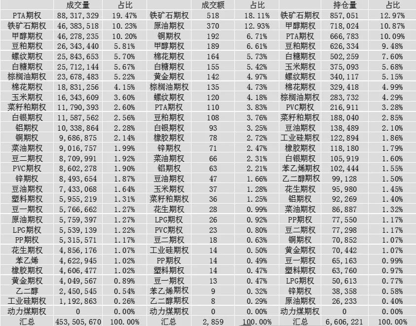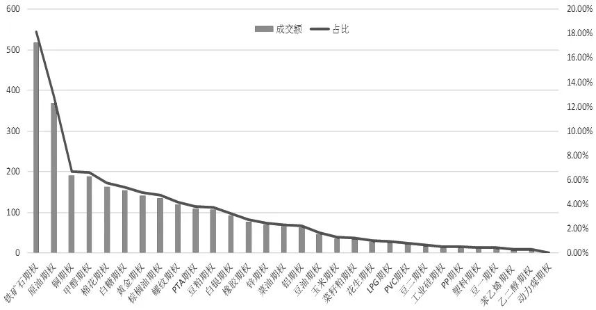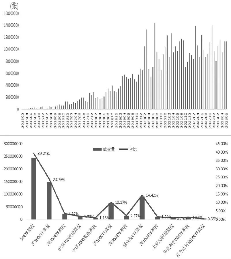 经过8年多的蓬勃发展,我国期权市场在多个方面取得了令人瞩目的成就,呈现出持续增长的势头。市场规模不断扩大,成熟度稳步提升,彰显出良好的发展态势。目前,我国期权市场已经拥有42个品种,涵盖了金融、农产品、能源、化工、黑色、有色、贵金属等板块,基本实现了全面覆盖。截至6月底,2023年上半年总成交量累计达到45351万张,同比增长185%;累计成交额达到2859亿元,同比增长67%;6月底总持仓量661多万张,同比增加90%。 金融市场波动加大,推升期权交易需求 最近几年新冠肺炎疫情、地缘政治冲突、美联储加息等,引发了全球股市和大宗商品剧烈波动,而在这巨大波动的背景下,企业和投资者风险对冲的意愿和内在需求不断提升。除了传统的投资和套保手段,新的工具——期权,开始受到越来越多投资者的青睐,成为投资和风险对冲管理工具的利器,越来越多的机构、企业以及个人投资者开始使用期权工具进行规避风险,市场规模和投资者普及度也在不断攀升。 ![]() 图为国内期权品种上市数目 2023年上半年美联储持续加息,全球经济增长乏力,海外衰退预期较大,国内经济则处于弱复苏阶段,整体宏观环境较为复杂。国内股市整体低迷,大宗商品大面积下跌,期权凭借非线性特性较好地实现对冲保值以及平滑利润的功能,成交、持仓规模实现了稳步增长。Wind数据显示,2023年上半年商品期权和金融期权合计成交量为107624万手,其中金融期权成交量为62273万手,占比58%,商品期权成交量为45351万手,占比42%;成交额6887亿元,其中,金融期权成交额为4028亿,占比58%,商品期权成交额为2859亿元,占比42%;6月底持仓量为1299万手,其中,金融期权6月末持仓量为638万手,占比49%,商品期权6月末持仓量为661万手,占比51%。值得一提的是,我国商品期权在成交量、持仓量、成交额方面的市场占比逐年递增。预计未来商品期权市场仍将维持快速增长。 ![]() 图为2023年上半年我国金融和商品期权交投对比 ![]() 图为2023年上半年我国金融和商品期权交投对比 金融期权市场稳健增长 当前我国金融期权市场共有12个品种:3个股指期权及9个ETF期权。近两年交投规模整体呈现稳健增长态势,但今年以来股市表现不佳,期权市场交投也出现明显回落。截至2023年6月底,国内股票股指期权市场上半年总成交量累计达到62273万张,同比持平;累计成交额达到4028亿元,同比减少21%;6月底总持仓量达到638多万张,同比增加21%。 ![]() 图为我国金融期权成交额、成交量变化 ![]() 表为2023年上半年股票期权成交情况及排序(单位:张、亿元) 成交量方面,2023年上半年总成交量累计达到62273万张,同比持平。其中50ETF期权仍是投资者最为喜爱的交易品种,占整个市场总成交比例的39%。沪300ETF期权成交量占比也有24%。创业板ETF期权成交量占比14%。沪500ETF期权成交量占比10%。 ![]() 图为我国金融期权成交量情况 ![]() 图为我国金融期权成交额情况 成交额方面,2023年上半年我国股票期权累计成交额达到4028亿元,同比减少21%。从成交额占比来看,50ETF期权成交额占比为24%,沪300ETF期权占比达到20%,沪深300股指期权占比为13%,中证1000股指期权占比12%,沪500ETF期权占比11%。 持仓量方面,2023年6月底总持仓量达到638多万张,同比增加21%。从持仓量占比来看,沪50ETF期权持仓量占比仍最高,达到30%,沪300ETF期权持仓量占比19%,创业板ETF期权、沪500ETF期权则紧随其后,分别占14%和10.6%。 ![]() 图为我国金融期权持仓量情况 商品期权市场大幅增长 目前我国商品期权市场共有30个品种,已覆盖农产品、能源、化工、黑色、有色、贵金属等板块。整体市场发展良好,与金融期权市场相比,差距逐年减小,近几年均保持大幅增长态势,未来仍有巨大的发展空间。商品期权市场2023年上半年总成交量累计达到45351万张,同比增长约185%;累计成交额达到2859亿元,同比增加约67%;6月底总持仓量661多万张,同比增加90%左右。 ![]() 图为我国商品期权成交额、成交量变化 ![]() 表为2023年上半年商品期权成交情况及排序(单位:手、亿元) 成交量方面,2023年上半年商品期权市场总成交量累计达到45351万张,同比增长约185%。2023年上半年商品期权成交量同比放大主要是我国期权品种上市速度加快,新品种带来的期权成交量增速加快以及市场波动加大导致的。从各个品种来看,PTA期权成交量8832万手,占比达到19.5%,位列第一。铁矿石、甲醇分列二、三位,成交量分别为4638万张和4628万张。 ![]() ![]() 图为我国商品期权成交量情况 成交额方面,2023年上半年我国商品期权累计成交额达到2859亿元,同比增加约67%。从各个品种来看,铁矿石期权成交额518亿元,占比达到18.1%,位列第一。原油、铜分列二、三位,成交额分别为370亿元和192亿元。 ![]() ![]() 图为我国商品期权成交额情况 持仓量方面,2023年6月底总持仓量661多万张,同比增加90%左右。从各个品种来看,铁矿石期权持仓量86万张,占比达到13%,位列第一。甲醇、PTA期权分列二、三位,持仓量分别为72万张和67万张。 ![]() ![]() 图为我国商品期权持仓量情况 总结与展望 总体来说,2023年上半年国内期权市场延续了持续增长的趋势,尤其是商品期权市场表现突出。近两年来,市场波动明显加大,各个期权品种的历史波动率也上升至历史均值以上。在高波动行情下,企业和投资者对风险管理的需求显著增加,传统的投资和套保手段面临着巨大的压力,期权凭借其独特的非线