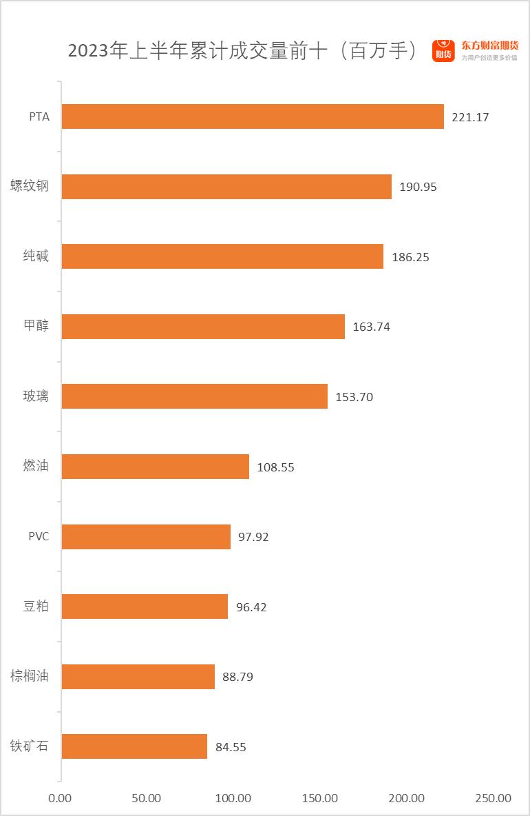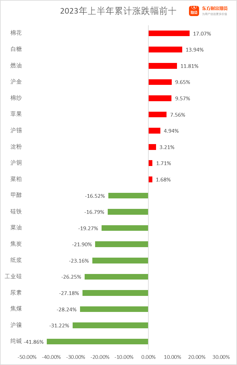 一文速览:2023年上半年商品期货累计涨跌幅前十和累计成交量前十