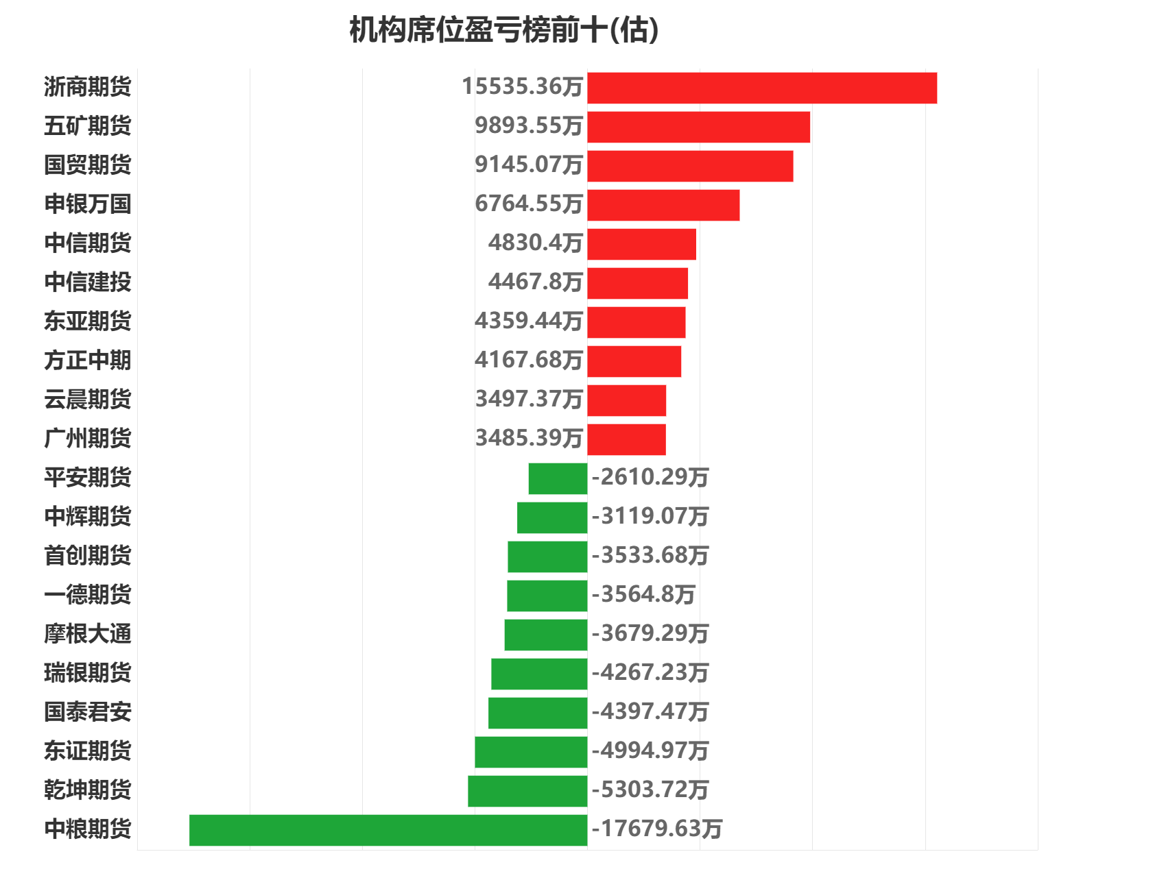 每日期货龙虎榜,带你深度了解市场。 市场一览:周二商品期货综合指数下跌0.43%,日内资金净流入43.35亿元。 市场成交量为3032.58万手,成交额为1.77万亿元。 持仓量为4241.12万手,较前一交易日增加5.52万手。 市场成交量前十和持仓量前十如下图所示: ![]() ![]() ![]() 品种盈亏榜:今日商品期货中纯碱盈利第一,为29006.78万元。 棉花亏损第一,为11236.90万元。 ![]() 就纯碱而言,今日盈利前三席位为浙商期货、申银万国、国泰君安,分别盈利15326.59万元、3610.26万元、2029.26万元。 今日亏损前三席位为宝城期货、徽商期货、中辉期货,分别亏损2901.42万元、1151.51万元、921.66万元。 ![]() 就棉花而言,今日盈利前三席位为永安期货、海通期货、中泰期货,分别盈利2141.24万元、1280.06万元、1016.19万元。 今日亏损前三席位为国贸期货、中粮期货、银河期货,分别亏损2215.04万元、2205.11万元、2193.25万元。 ![]() 席位盈亏榜: 今日机构席位中浙商期货盈利第一,为15535.36万元。 中粮期货亏损第一,为17679.63万元。 ![]() 就浙商期货席位而言,今日盈利前三品种为纯碱、玉米、沪铜,分别盈利15326.59万元、978.88万元、765.96万元。 今日亏损前三品种为菜粕、白糖、沪镍,分别亏损987.15万元、937.50万元、760.35万元。 ![]() 就中粮期货席位而言,今日盈利前三品种为玉米、菜油、菜粕,分别盈利2919.62万元、1225.16万元、1049.21万元。 今日亏损前三品种为生猪、沪铜、棕榈油,分别亏损5379.09万元、4507.60万元、4020.37万元。 ![]() 注:可通过点击东方财富期货APP资讯页面“龙虎榜”及东方财富期货PC端左侧“龙虎榜”查看各类机构持仓及盈亏榜单信息。 ![]() ![]() 以上图表数据来源:东方财富Choice (文章来源:东方财富研究中心) (责任编辑:admin) |
