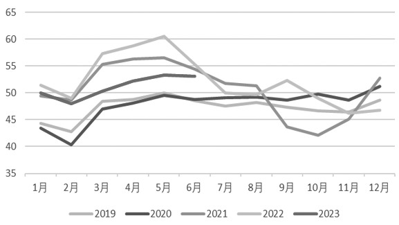 图为硅铁月度消费量(单位:万吨) 供应:利润主导 双硅分化 硅铁方面,上半年全国硅铁产量合计268万吨,同比下降16%。年初硅铁价格涨势强劲,宁夏地区硅铁厂即期利润在500—600元/吨,虽然没法跟前两年动辄千元的利润相提并论,但跟下游钢厂还在盈亏线附近挣扎相对比,硅铁生产的利润已经算相当可观了。对企业来说,宏观预期虽强,但及时利润兑现、占据市场份额才是王道,因此年后硅铁厂家更是加足马力生产,1月份硅铁产量高达51万吨,创近半年新高。不过好景不长,2月开始硅铁跌势逐渐向企业传导,厂家利润持续收缩,厂家错峰、降负荷生产范围不断扩大,后续又逐渐转为检修甚至停产,硅铁产量已连续4个月下降,端午假期归来,硅铁企业开工率仅为30%,是近3年同期低点,比2021年三季度能耗双控时期的开工率还要低。 锰硅:2023年1—6月,全国锰硅累计产量550万吨,同比增加6.2%。年初至今锰硅跌势同样流畅,但锰硅产量逆势攀升,主产区内蒙古企业基本都是满负荷生产,这与硅铁企业亏损减产形成了鲜明的对比。从基本面看,锰硅供应居高不下且下游需求单一,供需格局是远不如硅铁的,但今年北方锰硅企业生产经营十分平稳,完全没有去年全市场亏损、协会号召企业减产自救的颓势,这主要还是得益于今年锰矿、化工焦和电价的持续下跌。作为锰硅冶炼生产中占比超过85%的原料,今年上半年锰矿、化工焦和电价(内蒙古)累计下跌16%、34%和8.5%,而锰硅现货跌幅才11%,显而易见,锰硅企业的岁月静好,完全是锰矿和化工焦在负重前行。 需求:消费降级 全年收缩 今年铁合金消费全方位降级,无论是钢厂采购还是非钢消费,都出现了不同程度的萎缩。以硅铁下游为例,1—5月份四大领域实际消费量同比变动分别为:粗钢增加1.6%、金属镁减少22.7%、不锈钢减少1.3%、出口减少43.6%。 上半年出口拖累最大,但也在意料之中。今年1—5月硅铁出口19.8万吨,同比下降43.6%,硅锰出口2.87万吨,同比下降56%。一方面,海外加息周期不止,今年以来全球制造业PMI始终在荣枯线附近徘徊,欧洲经济已率先出现衰退,海外粗钢产量同比持续下降,硅铁出口需求不断萎缩,1—5月海外粗钢产量共计3.38亿吨,同比下降5.2%,其中日本和韩国产量分别为3650万吨和2840万吨,日本下降5.3%,韩国微增0.7%;另一方面,去年俄乌冲突推高了硅铁出口消费,高基数也导致今年出口降幅明显。预计今年下半年硅铁出口形势依旧偏差,同比降幅在5%—8%,全年出口降幅在30%左右。 再来看粗钢消费,作为铁合金最大的下游领域,钢厂采购一直是合金厂的主要销售渠道。从国家统计局数据来看,1—5月粗钢产量4.4亿吨,同比增加961万吨,增幅2.2%(同期的硅铁消费量增幅仅1.6%)。再看标杆大厂河钢集团采购情况,1—6月累计采购硅铁1.23万吨,同比增加14.6%,无论是粗钢产量还是钢招采量,上半年都是增长的,但是实际情况是,硅铁上游和贸易环节均表示需求出货偏差,往年的旺季补库行情始终也没等到。春节过后下游陆续开市,但成材需求始终低迷,钢厂只能向上游挤压双焦、合金等原料价格,并维持原料低库运行的采购模式,截至6月份,钢厂硅铁和锰硅库存天数仅为16.74和16.81天,属于绝对低位水平,钢厂今年将降本增效发挥到极致,大幅挤压合金的投机性补库需求,这也是合金需求持续低迷、价格单边下跌的最主要原因。如果以10亿粗钢产量为全年上限,那么下半年产量将面临8%左右的降幅压力,钢厂减产任务艰巨,这也将对铁合金需求形成直接的利空冲击。 成本:原料普跌 支撑不再 今年以来国内煤炭价格持续下跌,供需格局宽松成为价格的主要拖累。截至6月30日,秦皇岛动力煤(Q5500)平仓价为840元/吨,较年初下跌360元/吨,跌幅30%。从数据来看,1—5月国内煤炭供应总量20.9亿吨,同比增长9.0%,其中原煤产量19.1亿吨,同比增长4.8%;煤炭进口1.82亿吨,同比增长89.6%。而煤炭消费量约18.2亿吨,同比增长仅4.9%。2023年能源保供政策延续,国内煤炭产量稳定增长,预计今年同比增加超1亿吨。进口方面,随着澳煤禁令取消以及国际煤价下跌影响,自3月份开始,澳煤到港量出现了明显的增加。1—5月动力煤进口量合计6531万吨,同比增长120%,分国别来看,除进口印尼煤环比有所减量外,俄罗斯、澳大利亚及蒙古国煤炭均有增长,其中进口澳洲动力煤1092万吨,同比增幅高达1468%。 从近两年的合金价格运行看,煤炭作为铁合金成本之锚,对合金行情的助推作用非常明显: 2021年,当时地产投资和钢铁需求仍处在高位,合金供需格局健康,能源紧张导致的限产限电将铁合金价格推升至历史高位;但今年以来,地产市场进入磨底阶段,合金需求低迷,叠加煤炭供应宽松,铁合金面临需求和成本双层考验。 电力方面,西北产区大工业电价较年初分别下调1—5分不等,降幅主要是受输配电价改革影响,对生产企业来说实际下降幅度有限。不过从火电企业角度来看,燃料成本占电厂发电成本的70%左右,是最主要的经营成本。随着煤炭供需格局持续宽松,中长期煤价仍面临下行压力,成本端煤价的大幅下降也有望带动长协煤履约率提升,火电企业原料成本有望持续降低。未来,随着电力市场化改革的不断深入、煤炭供应持续宽松、新能源装机及发电量占比不断提升,电力交易价格重心可能继续下移,合金成本支撑效应或进一步削弱。兰炭和化工焦方面,作为原煤的下游加工产品,二者价格高度依赖煤价,随着原料煤价持续