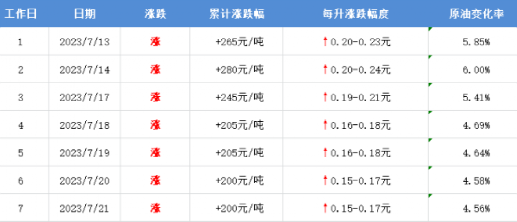 下周又要调油价了!周末有空可以提前加个油~ 按照国内现行成品油调整机制,下周三(7月26日)24时,国内第15轮油价调整将正式到来。 根据机构测算,新一轮油价调整大概率还是会出现上调。在油价统计周期的第7个工作日,参考原油变化率为4.56%,预计汽油上调200元/吨,大幅超出50元/吨的调价红线。按50升的油箱计算,加满需要多出8元的成本。如此轮上涨最终确定,国内油价将迎来“三连涨”。 来看详情—— 油价调整进入倒计时 或将出现“三连涨” 距离新一轮油价调整的时间近了! 按照国内现行成品油调整机制,就在下周三24时,国内第15轮油价调整将正式到来。 在本次计价周期内,国际油价居高不下。据机构测算,7月21日,也就是本轮油价统计周期的第7个工作日,参考原油变化率为4.56%,预计汽柴油累计上调200元/吨,折算为每升油价涨价0.15-0.17元。 ![]() 按此计算,车主朋友们加满50升的油箱,可能会多支出8元。建议赶在下周三晚上涨价之前,先抽空去加满油箱。 当然,距离调价窗口还有三个工作日。不过按照目前超出调价红线150元/吨的情况来看,下周三的涨价将是大概率事件。 近期国际油价持续走高,在前两轮油价调整中,国家发改委已两度宣布上调国内成品油油价。 7月12日,国家发改委公告称,自当日24时起,国内汽、柴油价格每吨分别提高155元、150元。6月28日,国内汽、柴油价格每吨均提高70元。也即,如此次油价上涨正式落地,国内油价将面临“三连涨”的局面。 就目前油价来看,国内各省份92号汽油价格普遍在7.44-7.81元/升(西藏、海南除外),95号汽油则普遍在8元/升以上,仅宁夏、陕西、新疆还勉强保持在8元线下。在此次涨价过后,国内95号汽油将全面进入“8元时代”。 ![]() 国际油价持续走高 受国际局势等多方面影响,国际油价本周已出现连续第四周上涨。 截至7月21日收盘,纽约商品交易所9月交货的轻质原油期货价格收于每桶77.07美元,涨幅为1.88%;9月交货的伦敦布伦特原油期货价格收于每桶81.07美元,涨幅为1.80%。 据外媒援引咨询机构Price Futures Group分析师Phil Flynn称,石油市场正开始缓慢反映即将到来的供应紧缩,全球供应开始吃紧,这可能在未来几周急剧加速。地缘风险加剧也会影响油价。 据花旗分析师称,鉴于喜忧参半的全球需求前景,油价近来可能难以找到清晰的方向。不过,在沙特减产和地缘政治风险支持需求后,5月和6月在72到78美元内挣扎的布油本月已经涨破这一区间。 美国能源信息署数据显示,6月份欧佩克原油日均产能3206万桶,比5月份日均产能减少2万桶。欧佩克原油剩余生产能力日均376万桶,比5月份日均减少15万桶。 据俄新社报道,当地时间7月21日,俄罗斯副总理亚历山大·诺瓦克公开表示,俄罗斯不排除对石油产品出口实施配额制,以稳定国内汽油价格。俄罗斯汽油批发价格已创新高。“原则上,配额制是被考虑的选项,但还有其他提议。我们需要权衡利弊。” (文章来源:中国基金报) (责任编辑:admin) |