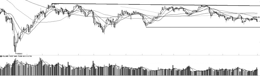 IF加权自前一周突破通道上轨的压力线后,压力线转换为支撑线,上周5个交易日低点均被支撑线所支撑,且自6月8日以来IF加权的低点逐渐抬高,构成一个收敛楔形。均线方面,MA5、MA10、MA20相互缠绕,但MA60仍是重要的移动压力线,短期IF加权依然处于振荡行情。指标方面,MACD红柱收窄,DIF与DEA向0轴靠近,表明IF加权指标仍在修复中。当前IF加权区间运行,上有压力下有支撑,后市夯实底部并向上突破的概率较大。 IC 区间运行