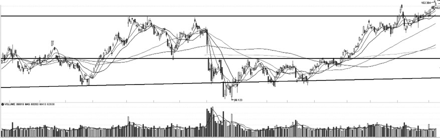 十债加权在6月19日受到支撑后,重心不断上移并于上周五再创年内新高。均线方面,MA5、MA10、MA20、MA60延续多头排列,中短期上涨趋势保持完好。指标方面,MACD红柱走扩,且DIF与DEA仍在0轴之上运行,短期依然有向上的动力。整体看,十债加权短期呈现加速上涨的节奏,后市关注2020年4月高点的压力情况。(招商期货 于虎山) (责任编辑:admin) |