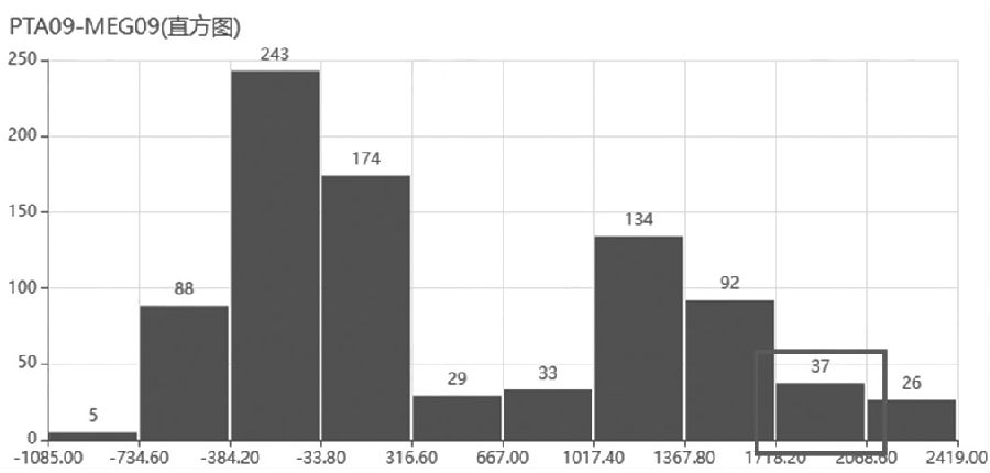 自5月15日开始,PTA与乙二醇期货收盘价差一路上升,截至7月24日,PTA2309-乙二醇2309合约价差最高达1798元/吨,PTA2401-乙二醇2401合约价差最高达1546元/吨,已经极大程度地偏离了常规值。二者下游聚酯产业链目前开工率虽有小幅下滑,但仍然高企。不过聚酯即将进入淡季,高负荷或无法维持。相比之下PTA供需边际走弱,但成本支撑较强;而乙二醇供应、库存偏高,向上驱动不足。总体来看,PTA短期振荡偏强,乙二醇相对振荡偏弱,注意聚酯开工率及价格回落风险。 PTA与乙二醇价差处于历史极值点 截至7月24日,PTA期货2309合约收盘价5830元/吨,乙二醇期货2309合约收盘价4059元/吨,价差1771元/吨;PTA期货2401合约收盘价5710元/吨,乙二醇期货2401合约收盘价4172元/吨,价差1538元/吨。PTA由于大量装置检修,自身社会库存在持续去库,加上绝对库存量不算多,表现出来就是期货贴水且月差较强。通过对PTA和乙二醇2309和2401合约进行套利分析,可以发现,PTA-乙二醇价差已经处于历史极值附近。