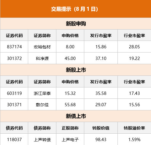 科大讯飞:持有本公司股份247,714,216股(占本公司总股本比例10.70%)的股东中国移动通信有限公司计划在2023年8月22日-2023年12月31日以集中竞价或大宗交易方式减持本公司股份不超过23,156,700股(占本公司当前总股本的比例为1%)。 中油工程:公司所属全资子公司寰球工程公司与广西石化签署中国石油广西石化炼化一体化转型升级项目乙烯装置工程设计采购施工总承包合同,合同金额46.58亿元。 白云山:子公司白云山汉方收到国家药监局核准签发的精制橄榄油化学原料药上市申请批准通知书。精制橄榄油为长链脂肪乳注射液、脂肪乳/氨基酸/葡萄糖注射液及多种油脂肪乳注射液等制剂的关键原料。适用于口服或肠内营养摄取不能、不足或禁忌的患者,进行肠外营养补充脂肪。 广汽集团:为完善公司在智能网联、高精度地图等领域的前瞻性布局,公司全资子公司广汽资本及其全资子公司广州盈蓬拟出资4000万元,与测绘股份等合作方共同投资设立“广东广祺舆图股权投资合伙企业(有限合伙)”。 平高电气:日前,国家电网有限公司电子商务平台发布“国家电网有限公司2023年第四十八批采购(输变电项目第三次变电设备(含电缆)招标采购)中标公告”等。公司及子公司、合营公司为相关项目中标单位,中标金额合计约8.76亿元,占2022年营业收入的9.45%。 安恒信息:公司目前有帮助车企建立联合实验室、给车企做合规咨询、渗透测试,并提供相关产品有汽车安全运营中心、安全检测工具箱,这些产品已在一些大型车企实现交付。目前公司合作的车企包括吉利、广汽、零跑、一汽以及比亚迪等。 药明康德:上半年营收188.71亿元,同比增长6.28%;净利润53.13亿元,同比增长14.61%。公司独特的CRDMO和CTDMO业务模式持续驱动公司收入稳健增长。 来伊份:公司及下属子公司,累计收到与收益相关的政府补助1116.90万元,超过2022年度净利润绝对值的10%。 三花智控:人工智能是未来发展的方向,公司已对机器人机电执行器方面展开持续研究和产品开发工作,已与客户建立合作具备先发优势。 碧桂园:预期截至6月30日止半年度可能录得未经审核净亏损。预计净亏损主要是由于房地产行业销售下行的影响,导致房地产业务结转毛利率下降,物业项目减值增加;以及外汇波动造成预期净汇兑损失所致。 特斯拉:旗下Model 3、Model Y多款型号在中国香港将于8月4日再次降价,是继4月15日调整售价后再次降价,部分车型的降价幅度高达11.9%。