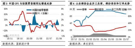 新华财经北京8月1日电 7月份棉纺产业链景气度下降,主要表现是随着传统淡季深入,下游备货进度放缓,但棉花价格震荡上涨,棉纱成本抬升,价格淡季上涨。8-10月市场将从淡季向旺季转换,棉纱价格或回调蓄势后继续上涨。 原料支撑较强,7月份棉纱价格震荡上涨 7月份棉纱价格整体走高,且高于十年同期均值,主要因素是预期偏强。据卓创资讯调研,新疆地区棉花播种面积同比下降7.03%,叠加厄尔尼诺等高温天气使得新棉单产仍有下降预期,棉纱成本支撑较强;另外,随着“金九银十”传统消费旺季来临,棉纱需求仍有向好预期,带动棉纱涨价。7月份全国3128B级皮棉均价17513.88元/吨,环比上涨3.22%,同比上涨4.5%;全国普梳高配32支纯棉纱均价24800元/吨,环比上涨1.22%,同比下降2.61%。 ![]() 棉纱需求尚可,“金九银十”仍有向好预期 7月棉纱需求季节性回落,其中内贸市场订单维持老客户发运,量价齐减,企业开工负荷高位下降,库存累积速度加快;外贸市场表现不佳,按单生产企业开工未能满负荷。统计局最新数据显示,6月份服装鞋帽、针、纺织品类商品零售额为1238亿元,环比增长15.06%,同比增长6.9%;1-6月累计零售额为6834亿元,同比增长12.8%。据卓创资讯调研,7月份山东棉纺企业平均订单排单4.6天,环比下降38.67%,同比上涨11.38%;平均开工负荷67%,环比下降3个百分点,同比上涨20个百分点;棉纱平均库存28天,环比增长40%,同比下降48.15%。虽然棉纱需求季节性回落,但总体仍好于去年同期,加之“金九银十”旺季即将到来,需求预期乐观,支撑棉纱价格。 ![]() “金九银十”棉纱仍有涨价空间 预计未来三个月国内棉纱价格或先跌后涨,从原料端来看,增发的棉花进口滑准税配额以及将陆续投放市场的储备棉或将缓解市场有效供应偏紧的问题,8月棉价存在高位回落压力,棉纱成本重心或将下滑。9-10月轧花企业抢收预期和减产预期支撑下,棉价有望再度上涨,并支撑棉纱涨价。 从供应端来看,当前棉纺企业生产整体正常,但随着需求回落,企业棉纱库存逐渐累积,8月份棉纺企业开工负荷或将继续下降,9-10月份随着旺季到来或将提高。 从需求端来看,国内消费复苏的预期依旧存在,但因8月份传统消费淡季下需求回落,或将拖累纱价。9-10月份需求旺季到来,或将支撑棉纱价格止跌反弹。 综上所述,预计未来三个月棉纱价格或先跌后涨。预计8月份随着淡季深入,棉花供应收紧预期交易暂停,棉纱需求将季节性回落,并随着棉纱累库加快,纱价或弱势下行。9-10月份随着下游旺季备货积极性提高,棉花价格上涨,纱价或止跌反弹。 (作者:刘杰,卓创资讯分析师) (文章来源:新华财经) (责任编辑:admin) |